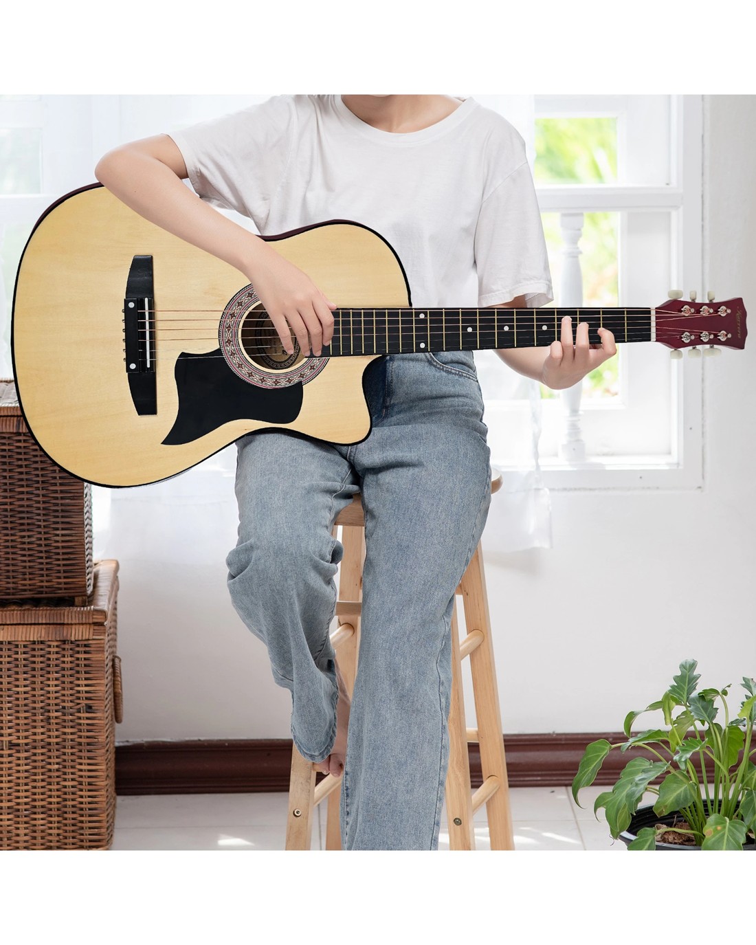 These 38-inch acoustic guitars are finely crafted for beginner to intermediate-level players. The high-gloss polished finish and excellent build quality of this hand-crafted instrument will really impress. Not to mention, this set comes complete with two picks, a weatherproof bag, and a shoulder strap!