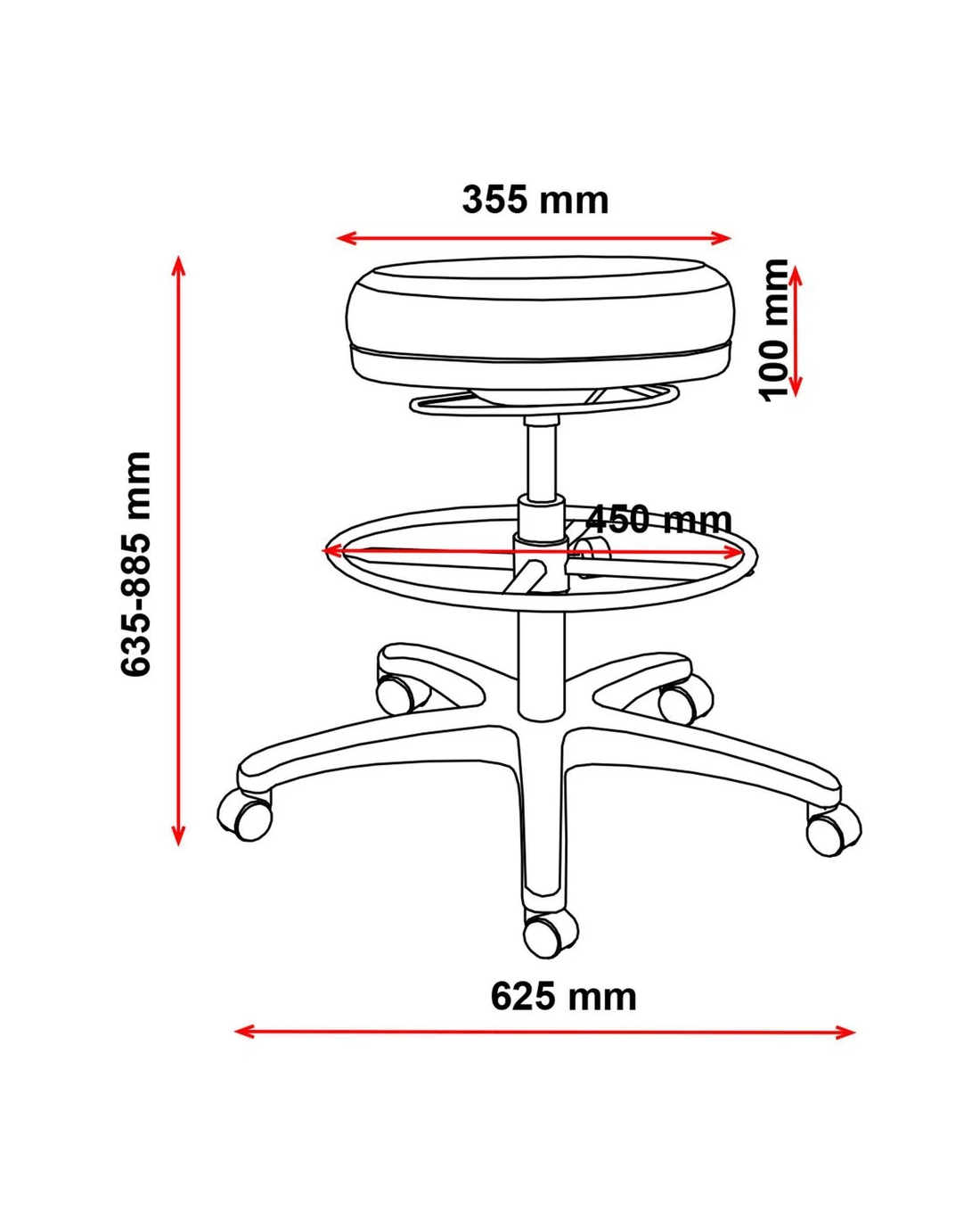 • This stool measures 550 W x 550 D x 885 H mm with a minimum height of 635 mm.