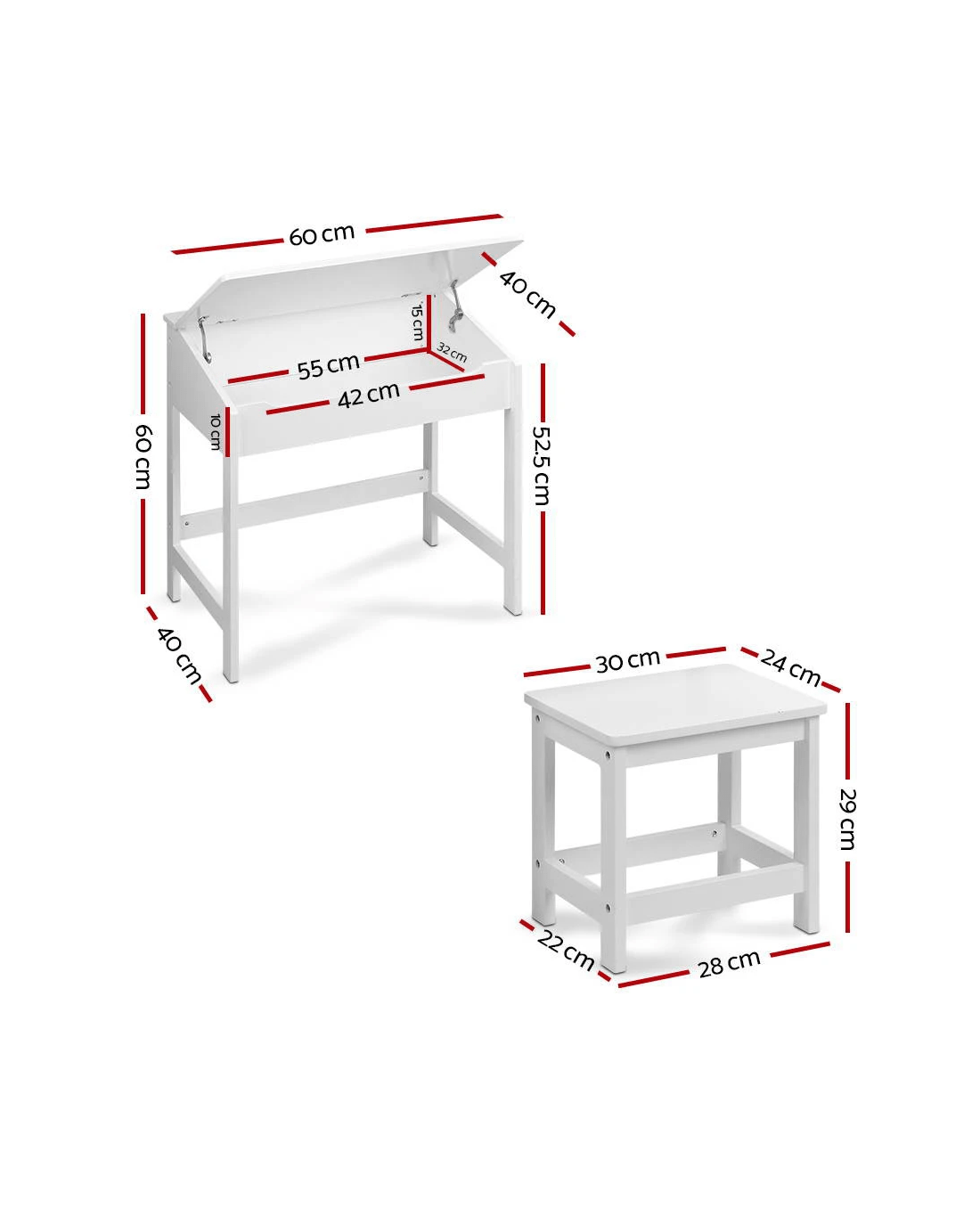Kids Lift-Top Desk and Stool x 1