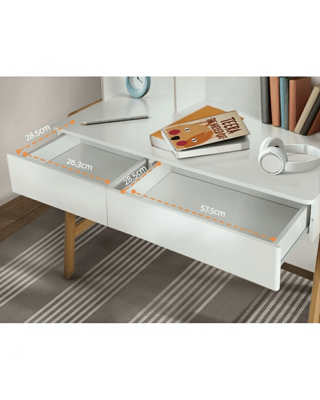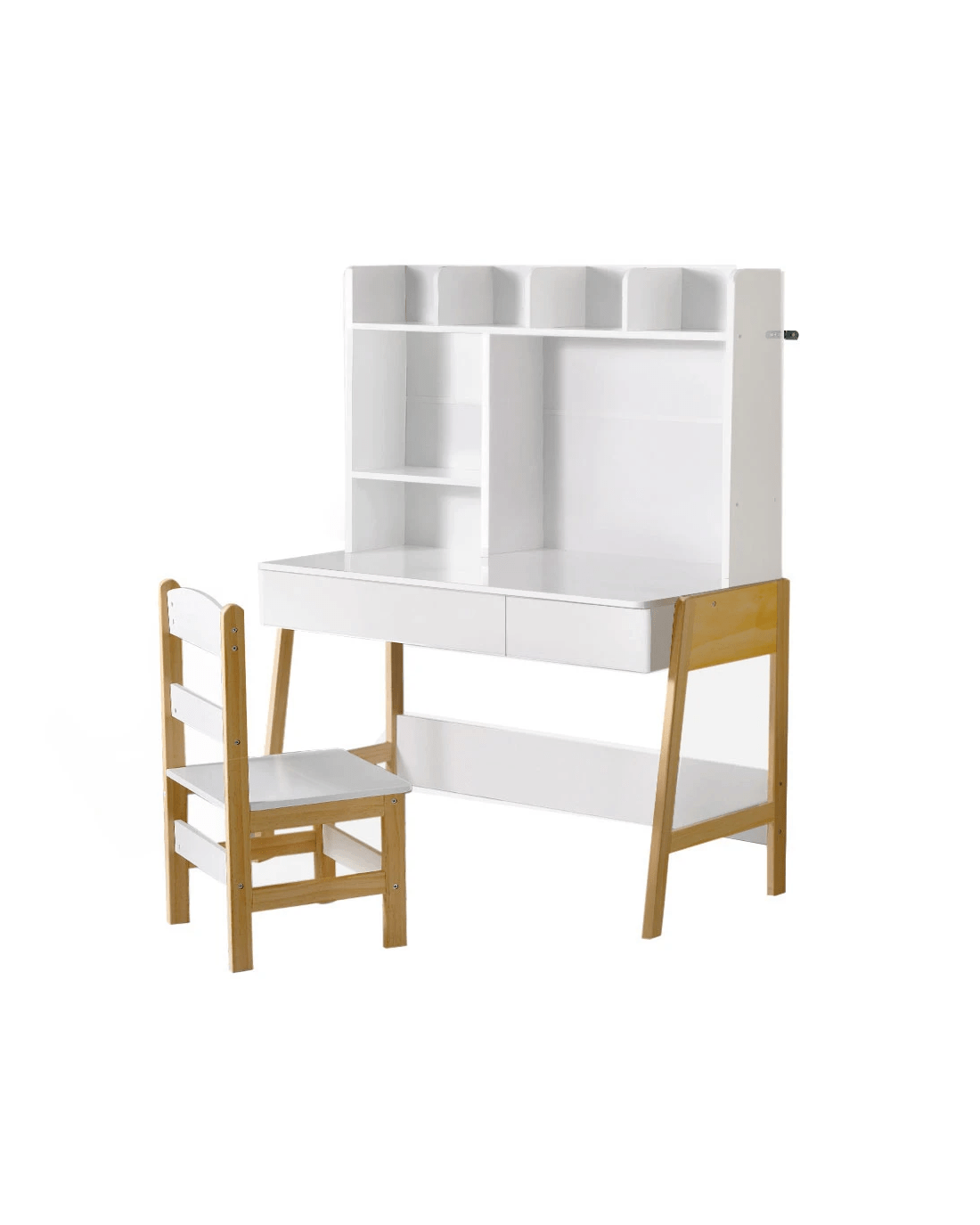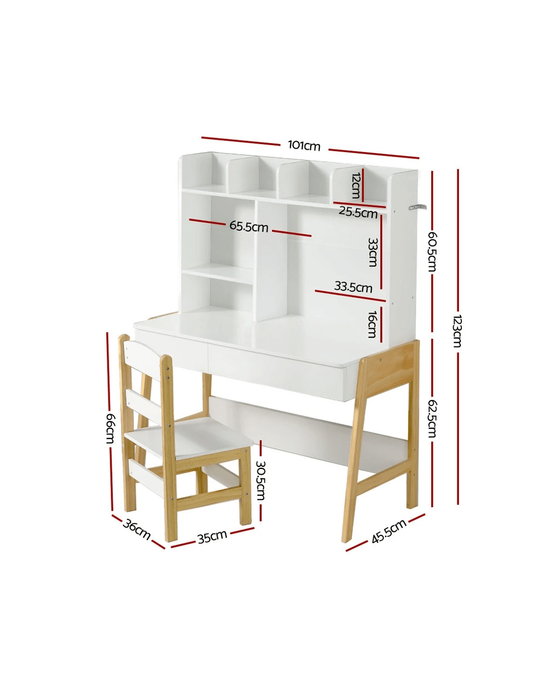 When you need a flexible piece of furniture that grows with your child, look no further than Keezi Storage Desk set. The desk is constructed from quality MDF and pinewood and finished with non-toxic paint, making it safe and durable for long-lasting play. The desk looks and feels just like an adult desk, encouraging pretend and creative play while matching your existing dEcor and acting as functional storage. Recommended for ages 3 and up, the desk suits all your child's needs as they grow - use it for eating, reading, writing or playing. It features a generous storage drawer and plenty of open shelving to store books, toys and colouring supplies. The chair has a comfortable backrest to encourage good posture, and the edges are rounded for safety. The desk and chair are easy to clean - simply wipe and go! The desk is also easy to assemble, so you can have your kid's workspace up and running in no time. Encourage your kids at every stage of their life with a Storage Desk Set from Keezi.