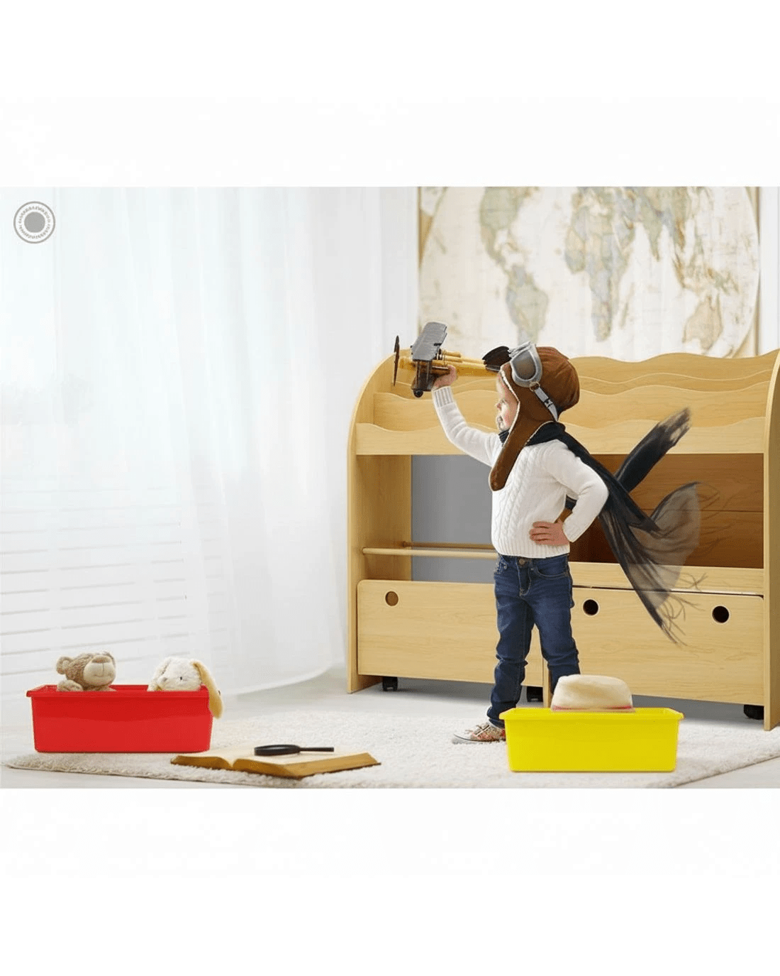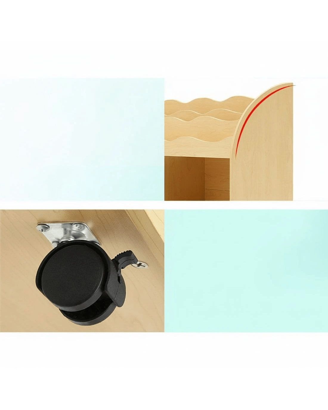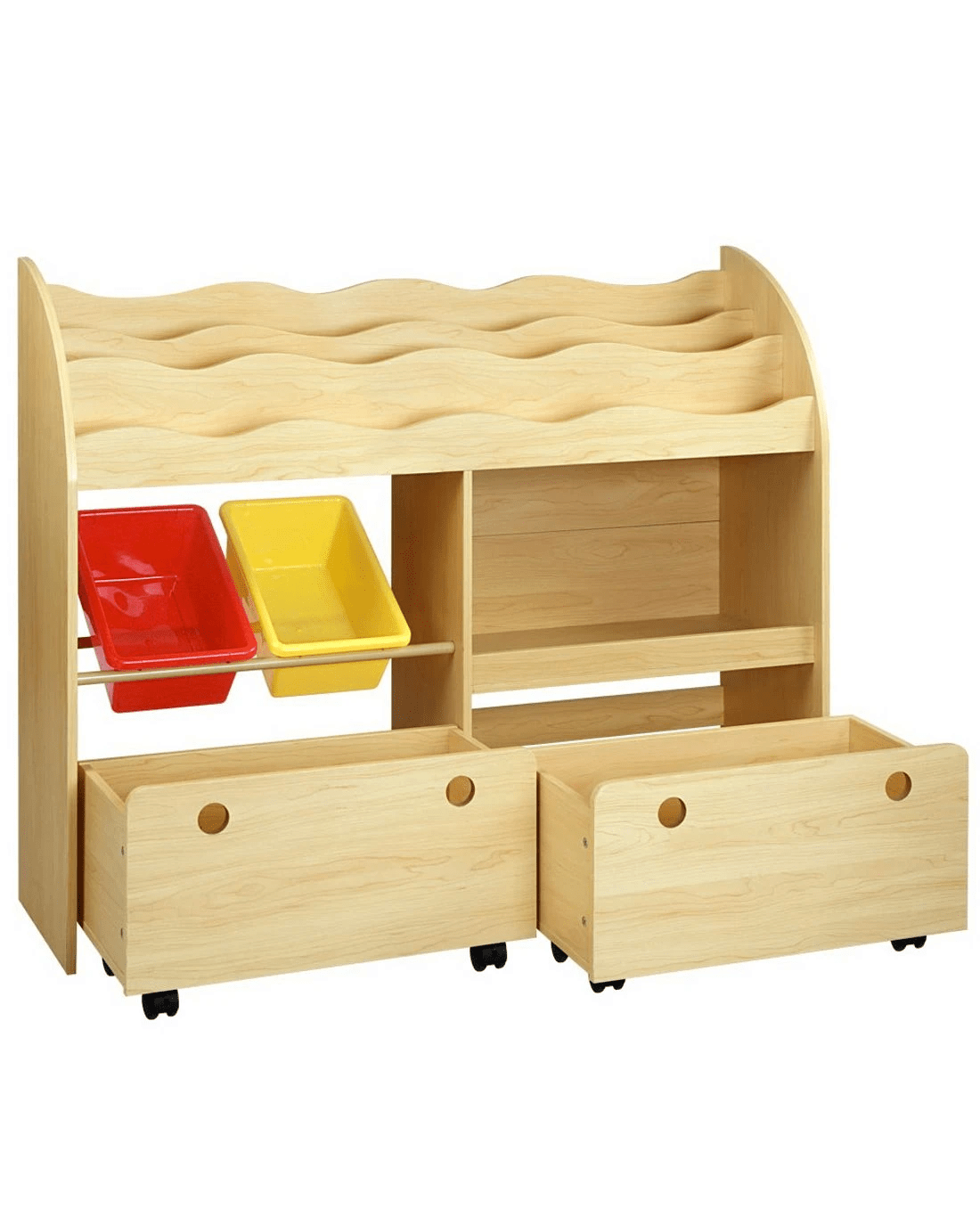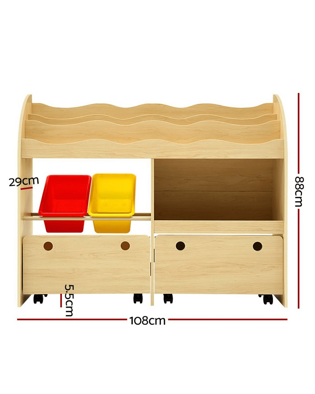 Encourage your little ones to read and learn to organize things with our Kids Display Shelf. With display shelves, storage boxes and removable drawers, the ensemble is made of durable MDF board. The boxes are made of PP plastic and are removable. Plus, the spacious drawers are also removable and provide even more storage options. The overall design is made child-safe with smooth round corners and easy-to-reach accessibility. Not least, the lockable wheels enable the unit to be firmly in place with every use.
