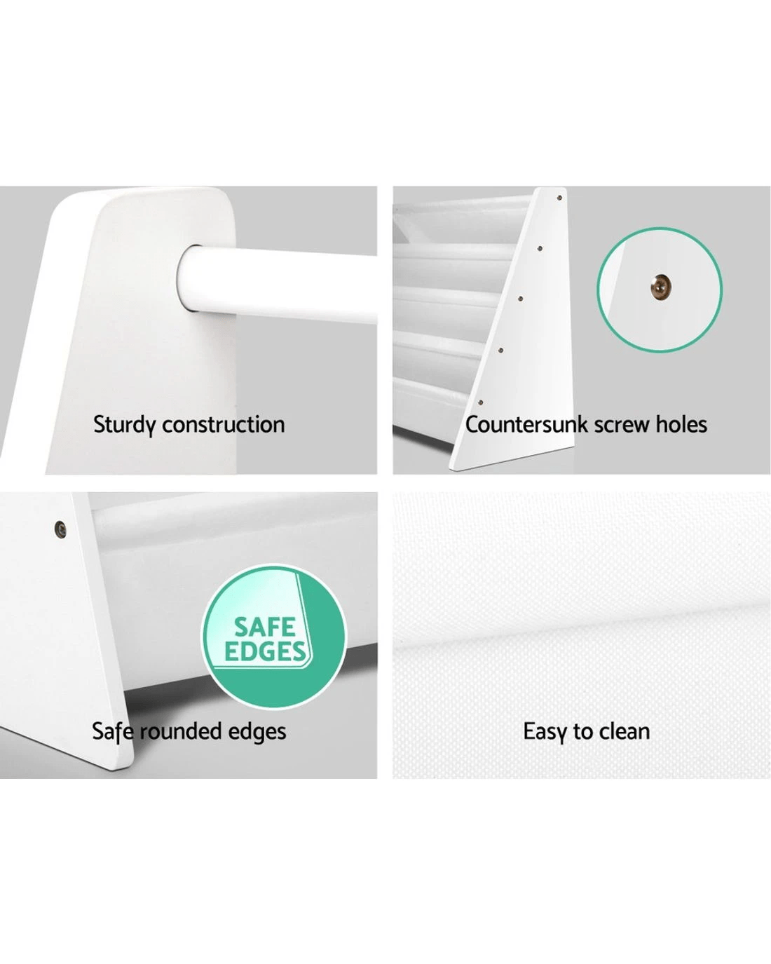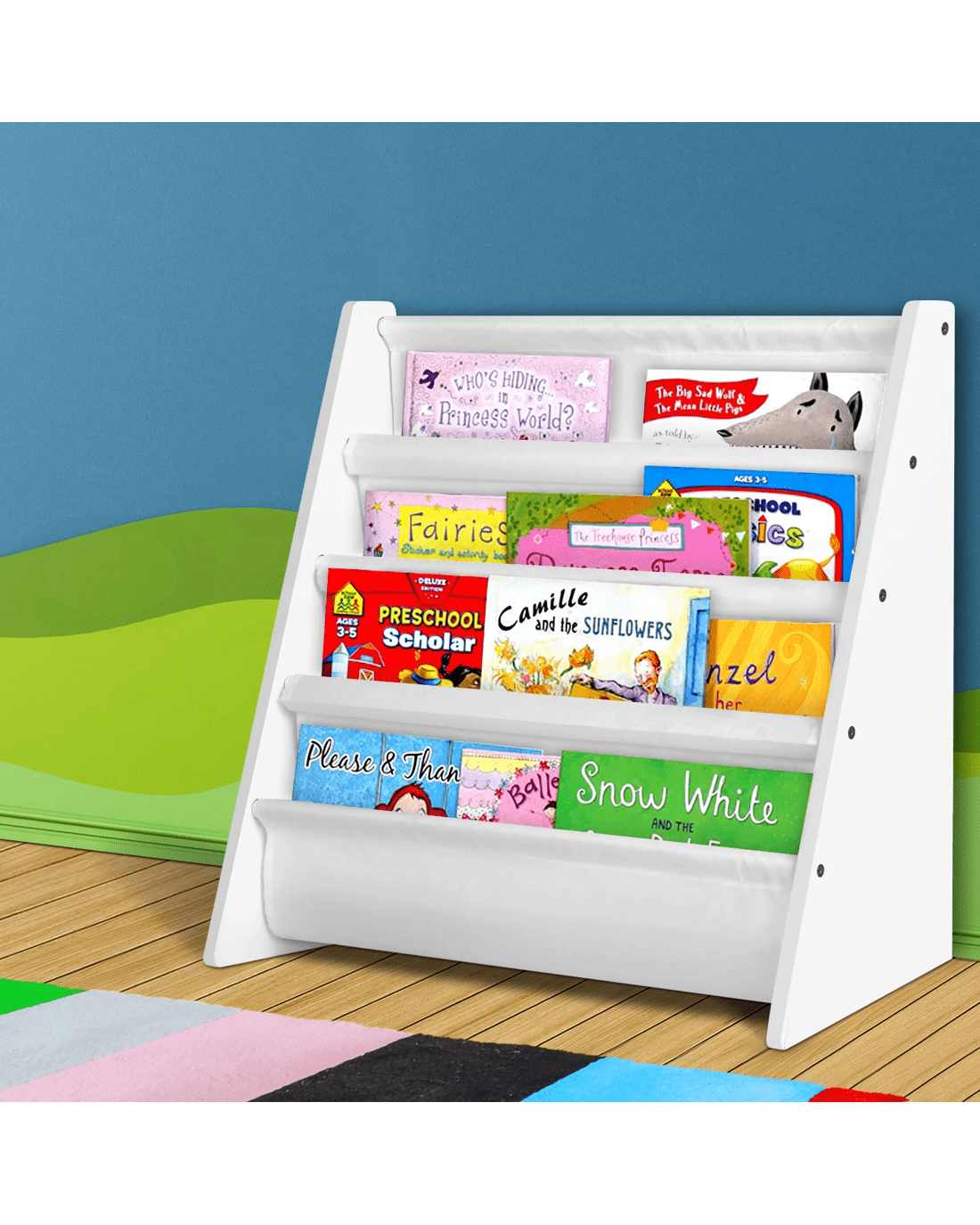 Keezi 4 Tiers Kids Bookshelf Magazine Shelf Children Bookcase Rack Organiser Toy Storage Reading Nook Playroom - White