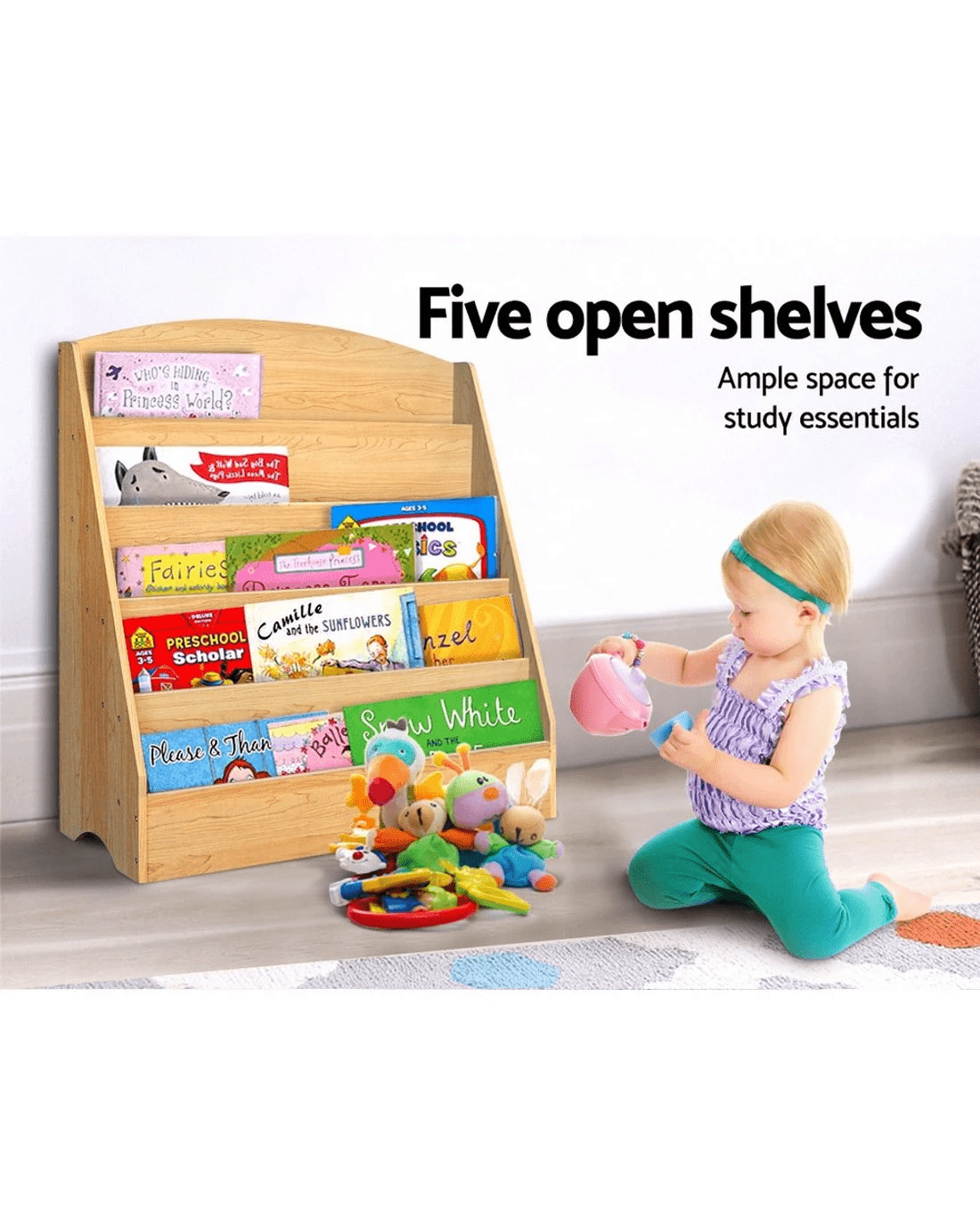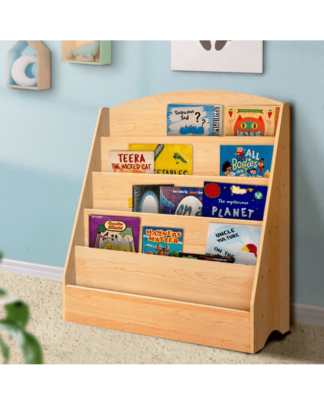 Keezi 5 Tiers Kids Bookshelf Magazine Shelf Organiser Bookcase Display Rack Toy Storage Reading Nook Playroom - Brown