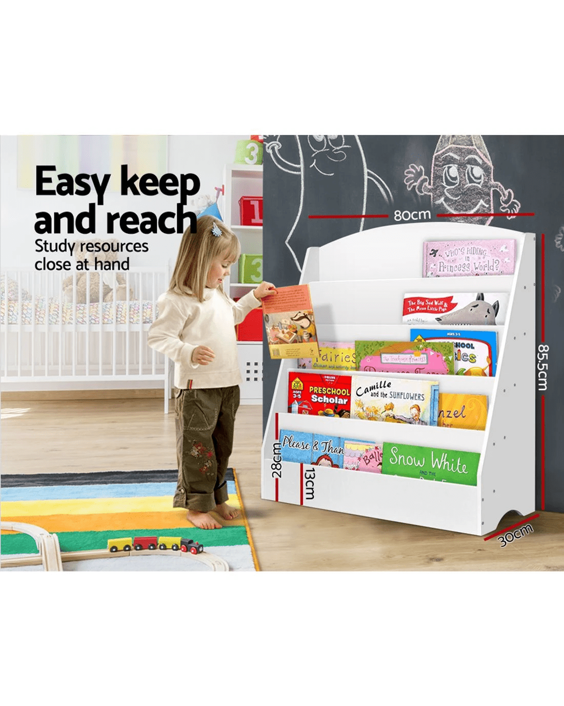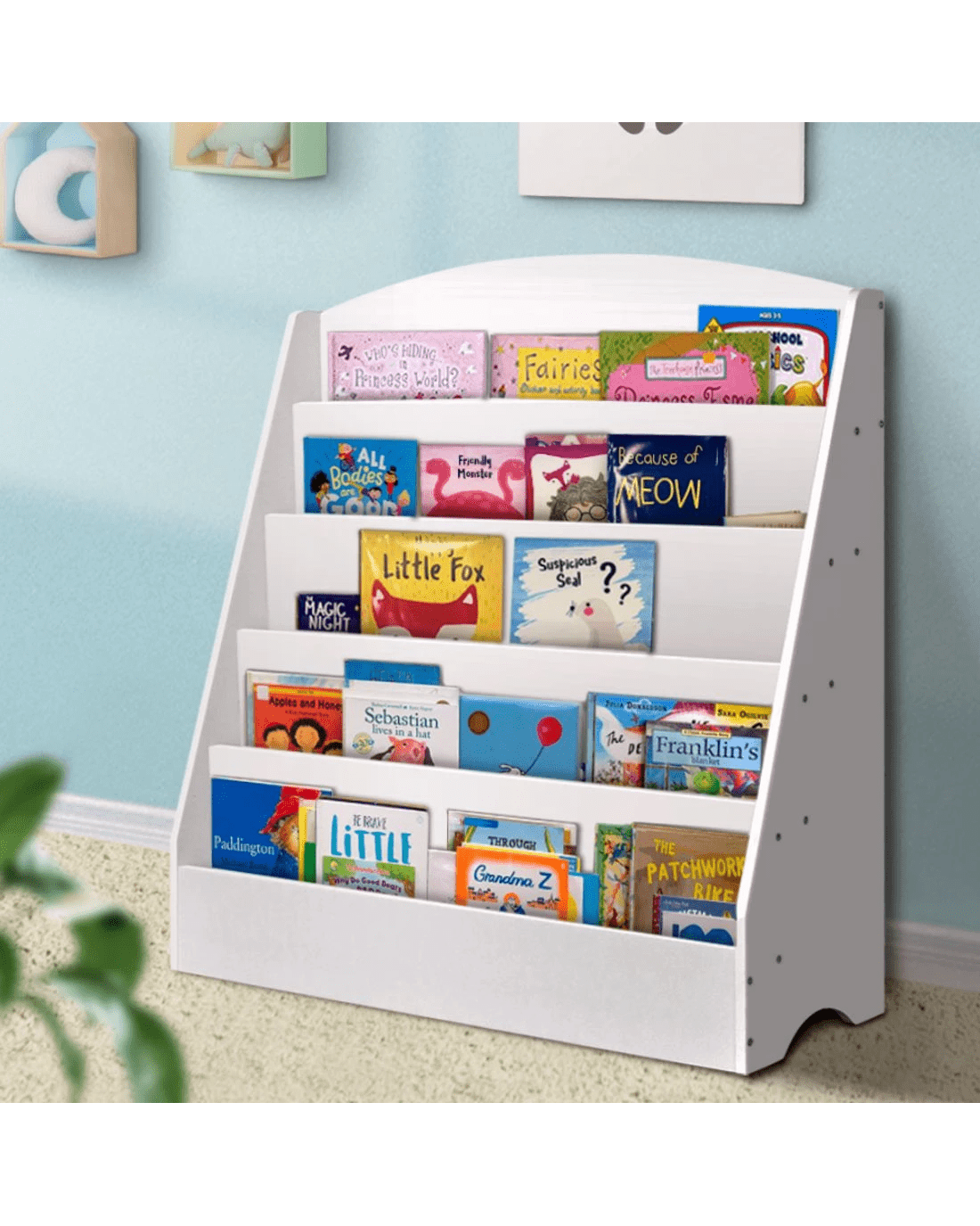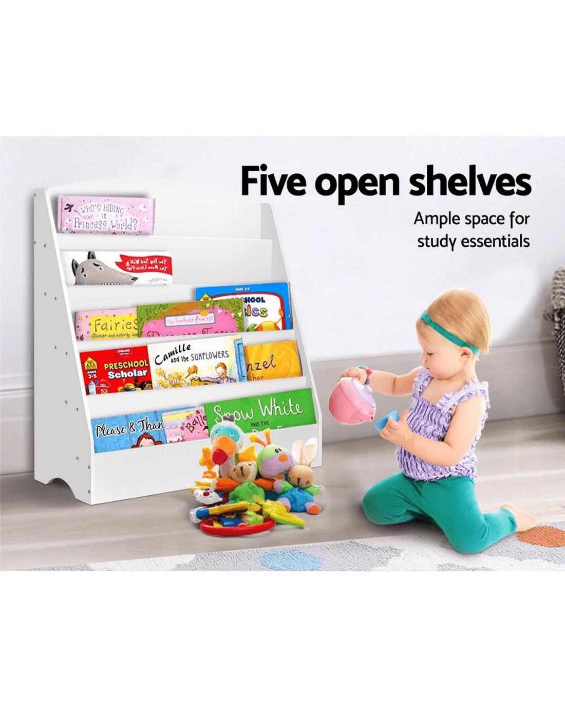Sold by Aisle SixKeezi 5 Tiers Kids Bookshelf Magazine Shelf Organiser Bookcase Display Rack Toy Storage Reading Nook Playroom - White