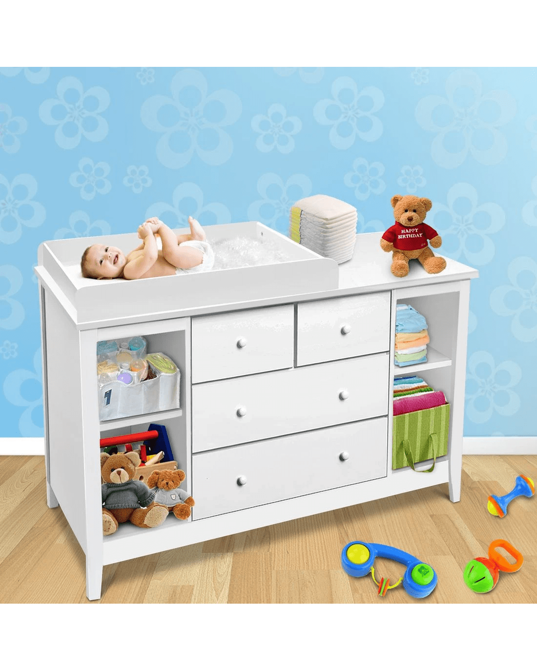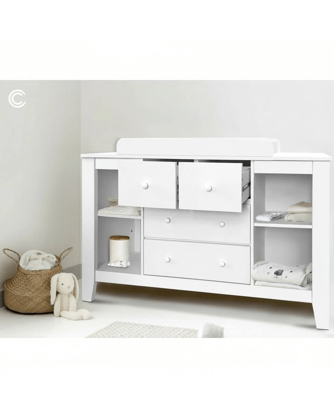 Sold by Aisle SixKeezi Baby Changing Table Diaper Station Drawers Chest Cabinet Nursery Furniture - White