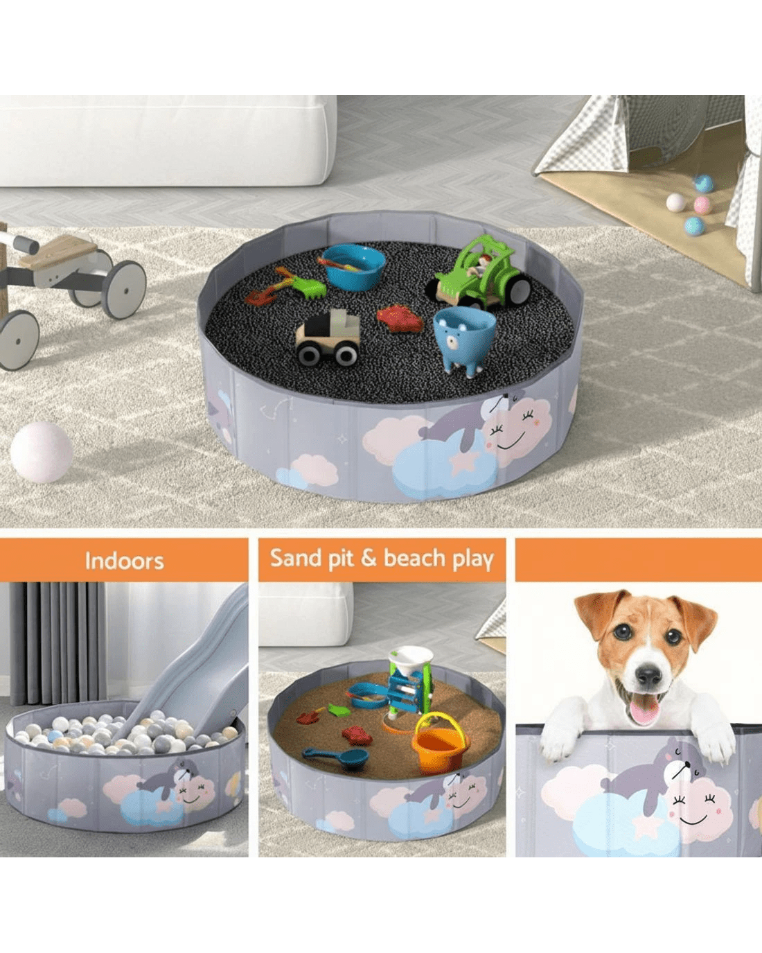 Multiple uses: indoors, outdoors, as a sandpit, at the beach or as a pet playhouse.
