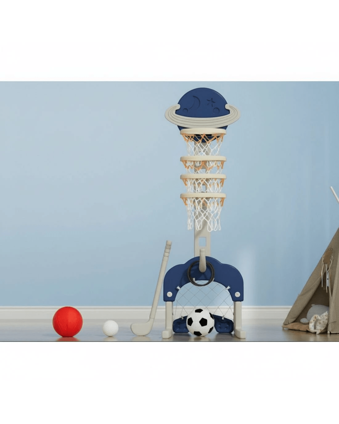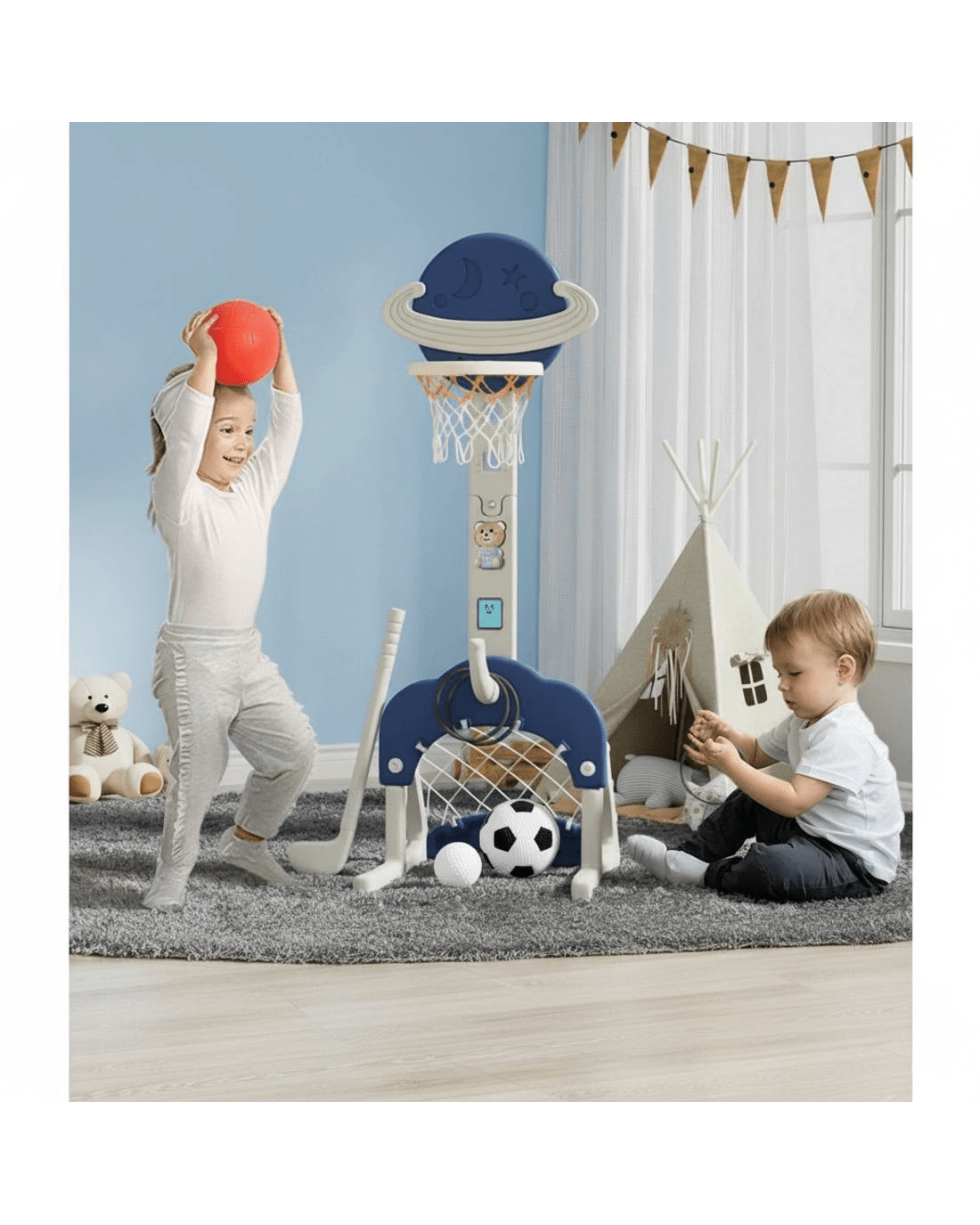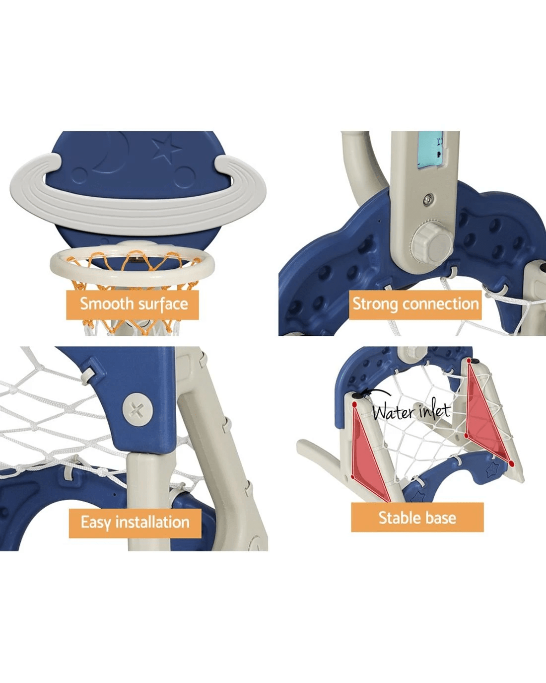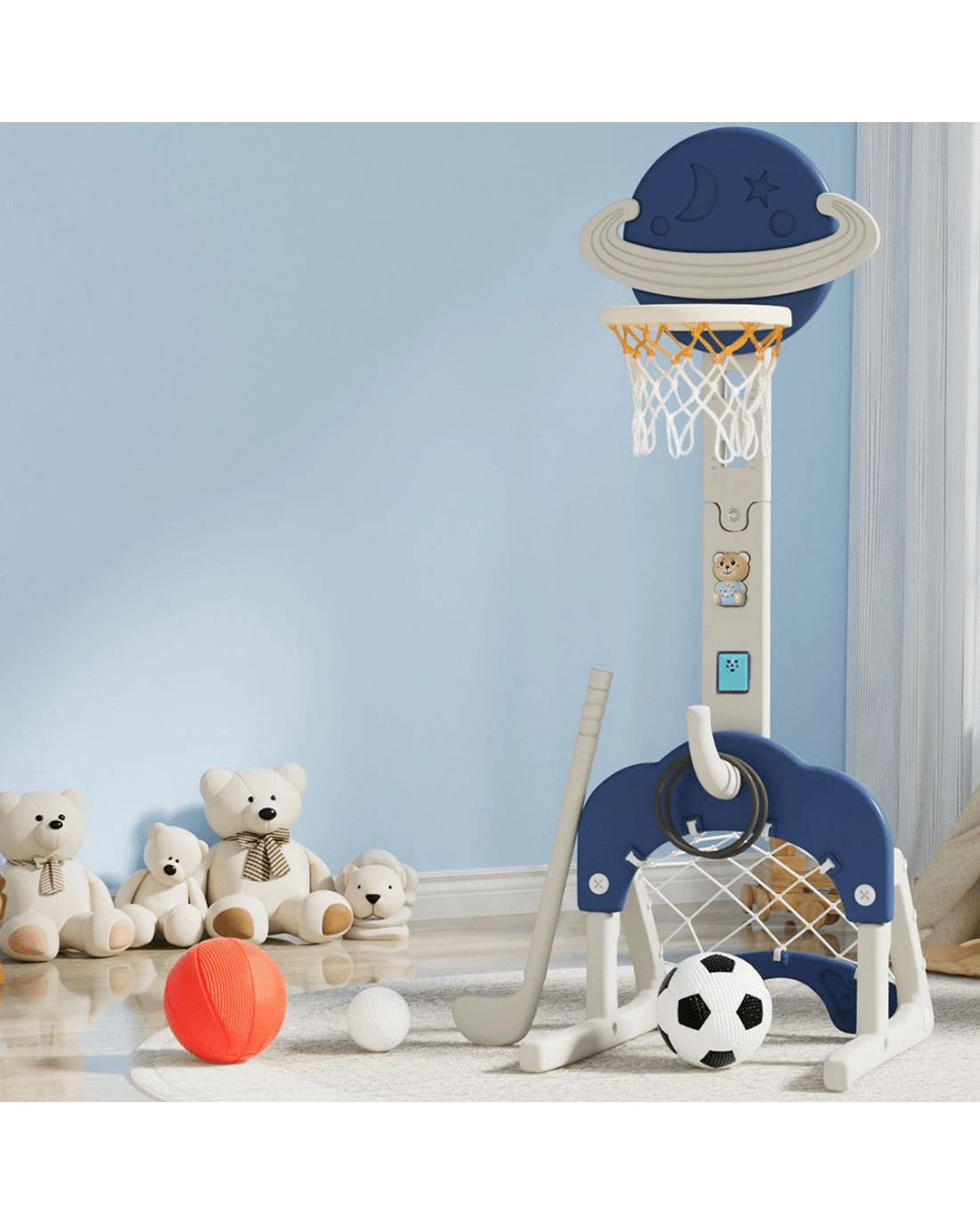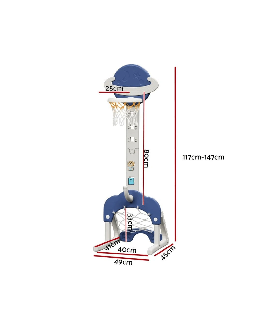 Keezi Kids Basketball Hoop Stand Adjustable 6-in-1 Sports Center Toys Set - Blue