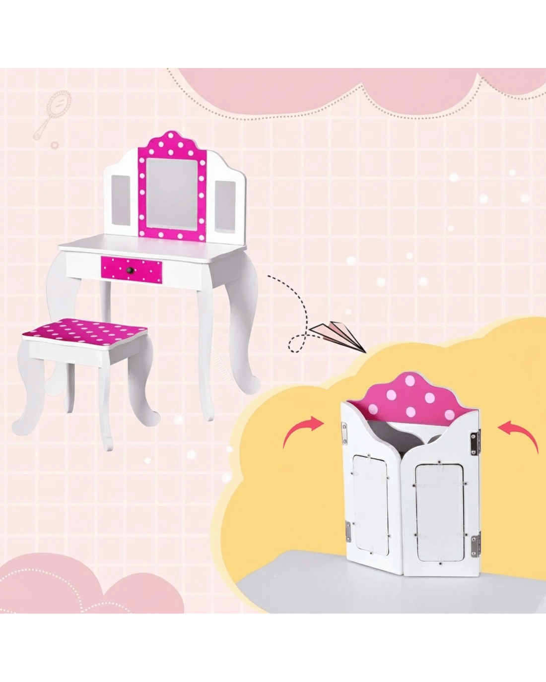 Sold by Aisle SixKeezi Kids Dressing Table Vanity Makeup Chair Set Wooden 3 Mirror Drawer - Multi