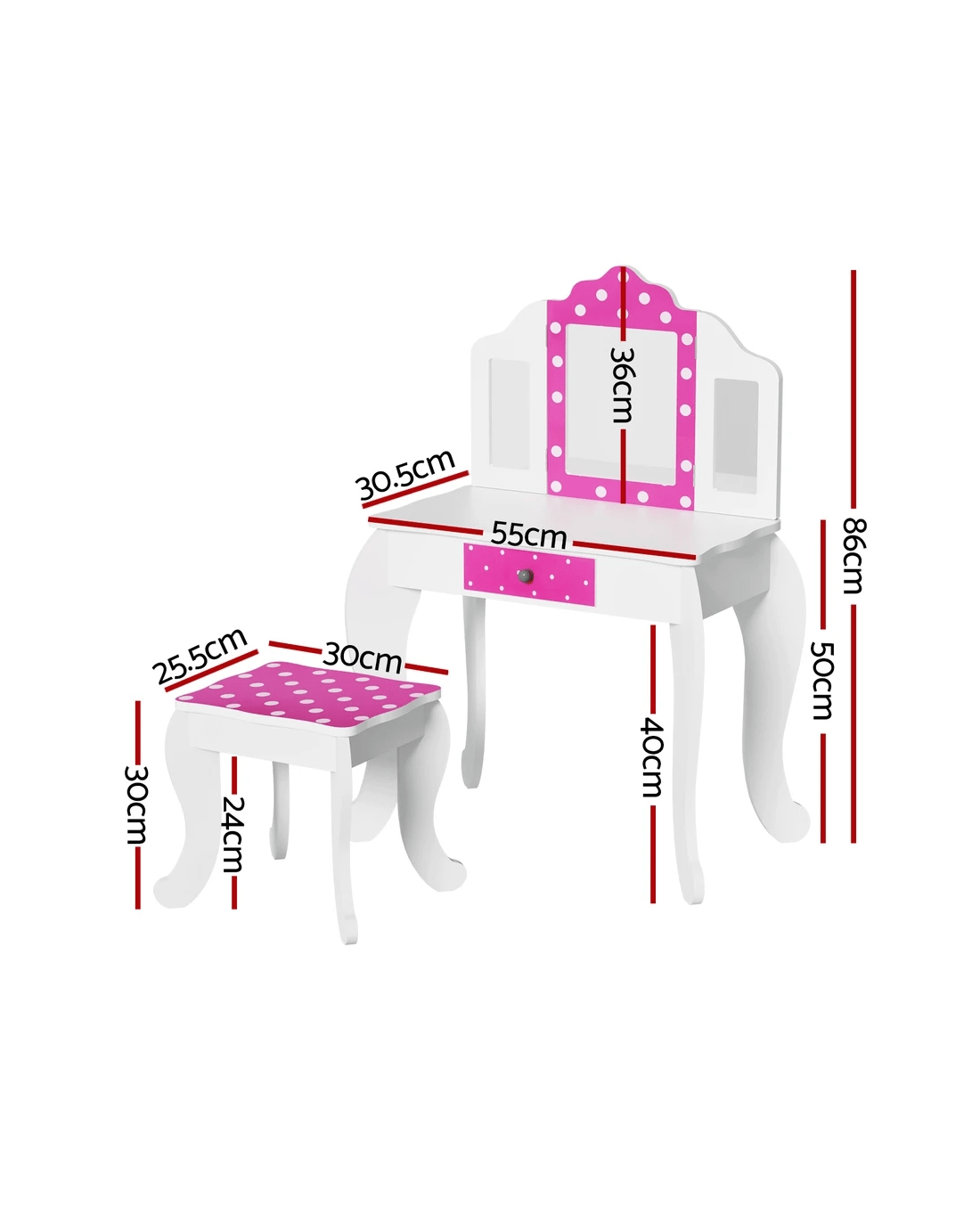 Introducing our Keezi Kids Dressing Table: crafted from high-quality MDF board, designed with rounded corners for safety, and easy-to-clean surfaces. Perfect for creating a safe and stylish space for young ones to explore and enjoy.