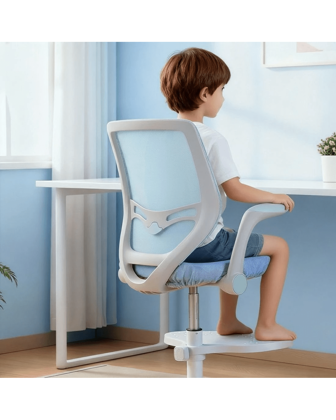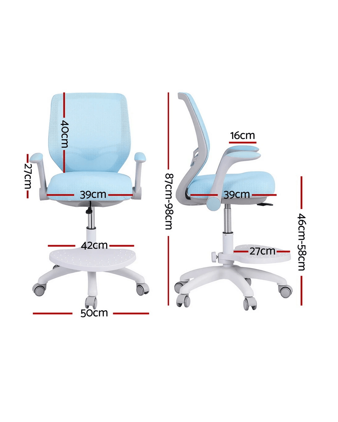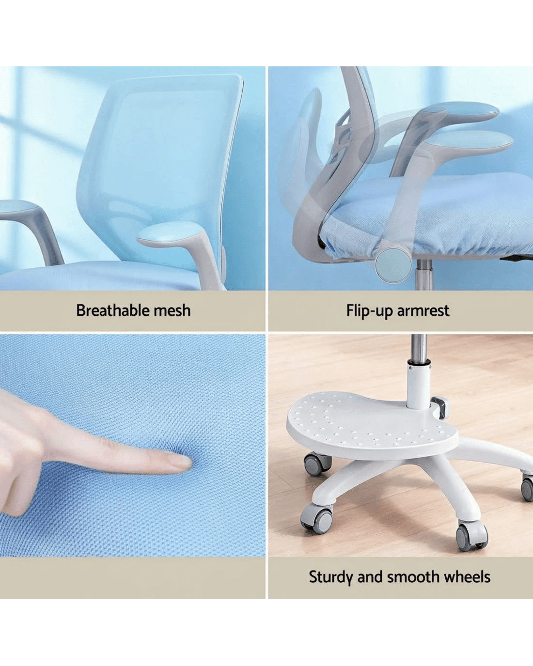 Upgrade your child's study space with the Keezi Ergonomic Kids Study Chair. Designed for total comfort and support, this chair grows with your child thanks to its easy height adjustment. It features an ergonomic, high-resilience net back for excellent airflow, keeping your child cool and comfortable. The 28D high-resilience sponge seat provides plush cushioning for long study sessions. This chair is fully mobile with smooth-rolling wheels and includes a sturdy footrest and adjustable armrests to ensure a perfect, healthy posture.