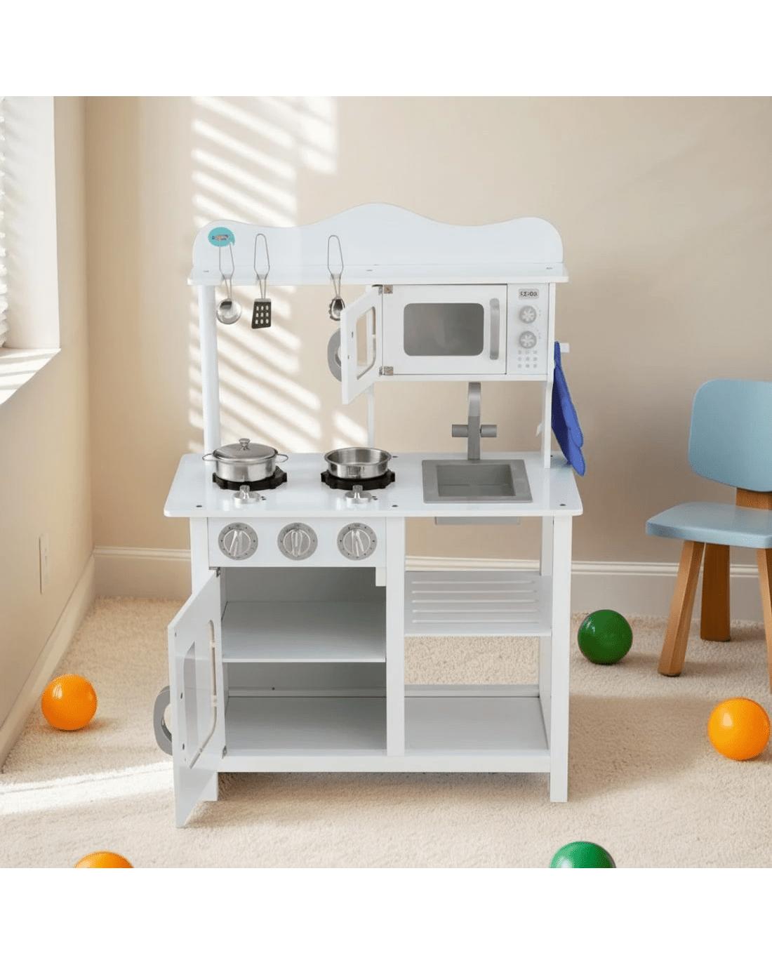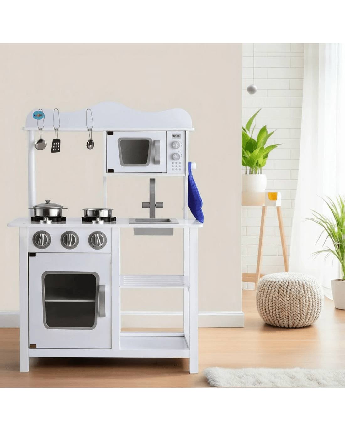 Keezi Kids Kitchen Play Set en Pretend Toys Cooking Children Cookware Food - White