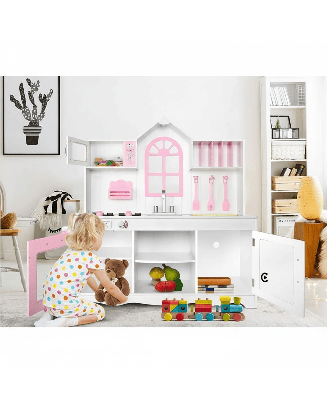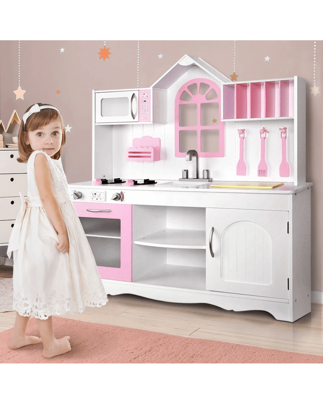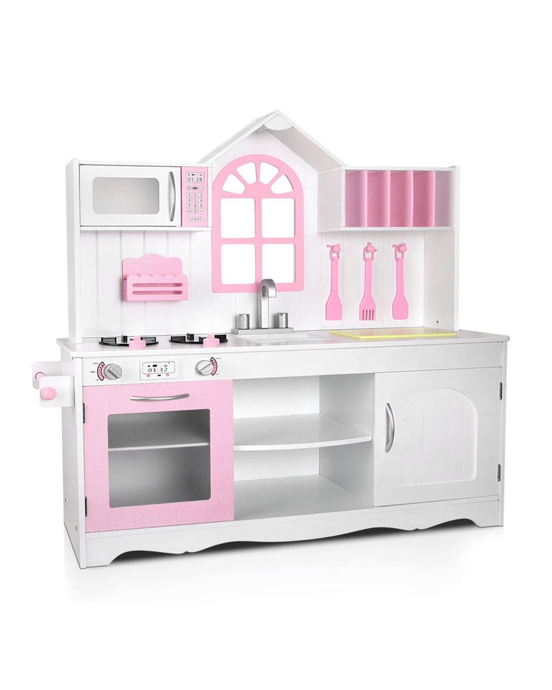Keezi Kids Kitchen Play Set Wooden Pretend Toys Cooking Children Storage Cabinet - White