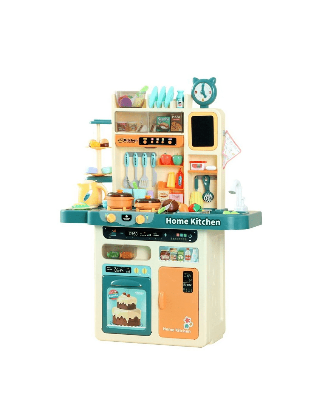Electronic stovetop, play sink with running water, dessert shelf, Mini blackboard