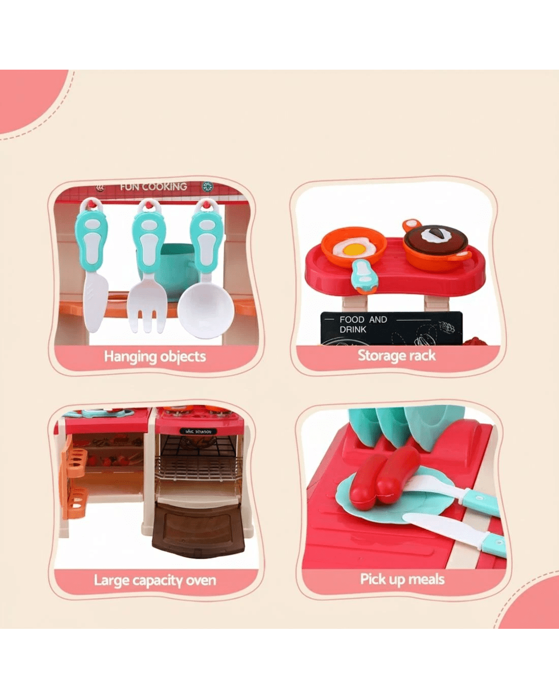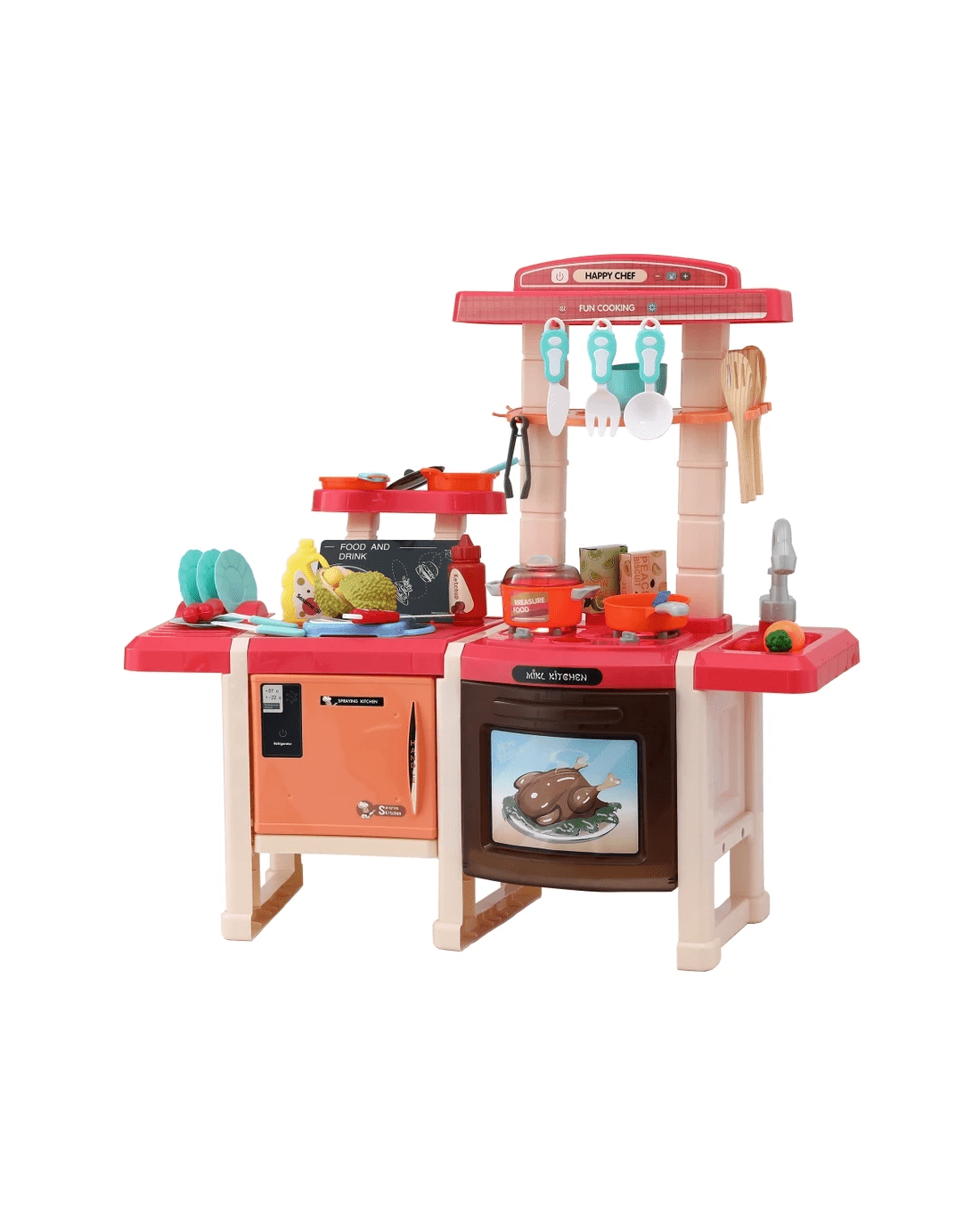 Our kitchen set is made from high-quality plastic with a smooth surface and rounded edges. It's sturdy and durable and just the right size for any three-year-old and above. The kitchen set comes with EN71 safety and quality approval and non-toxic paint finish for your child's safety. Now your young chefs can develop several basic life skills all while cooking and serving delicious meals for you. Go and get your kids in this Keezi's well-equipped kitchen today.