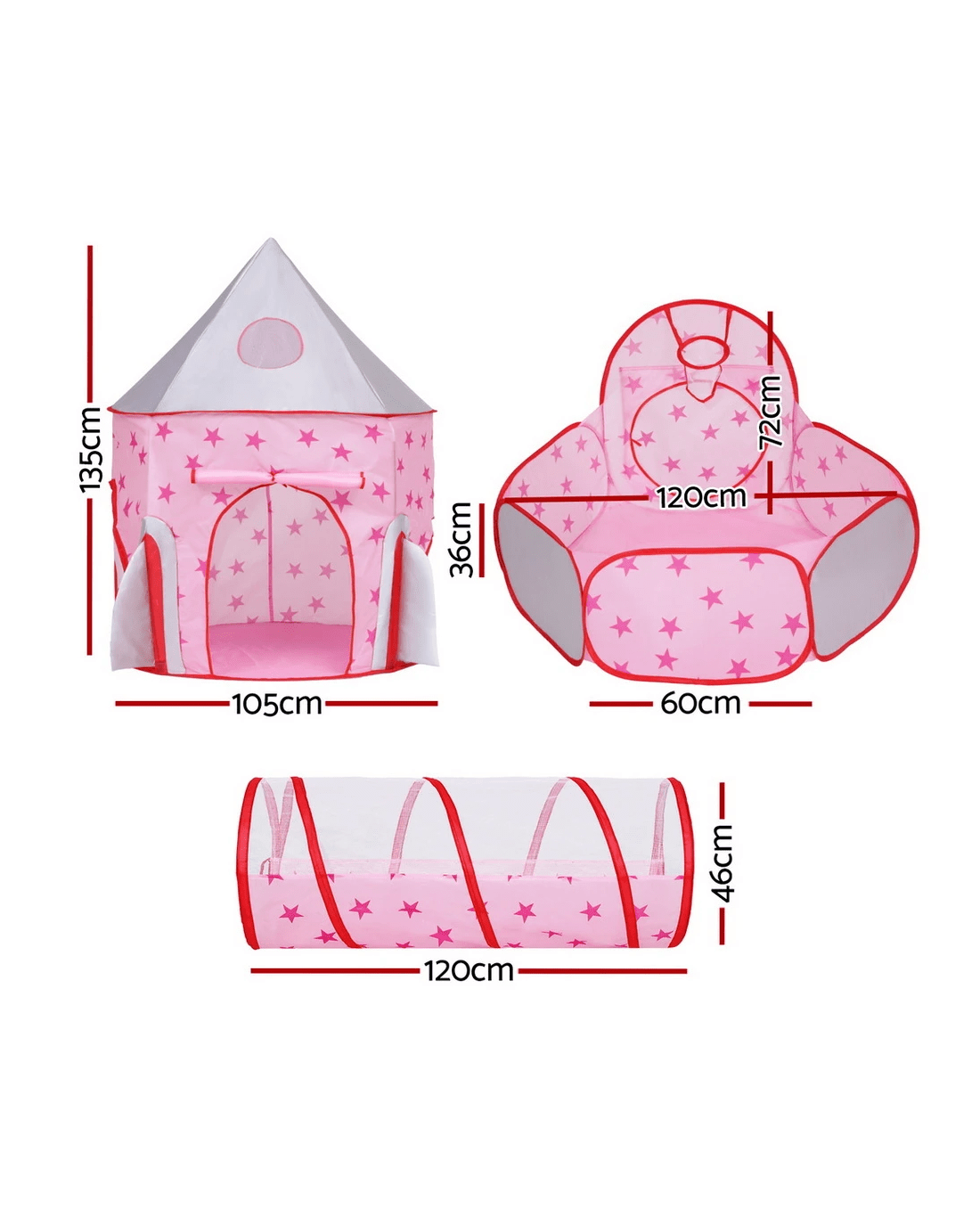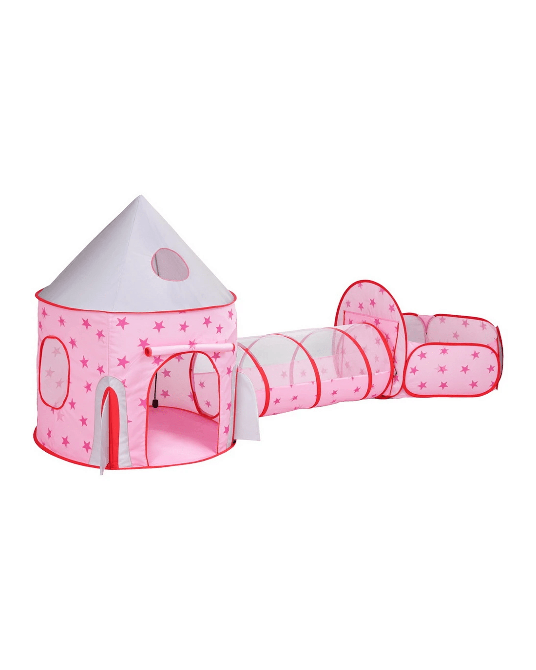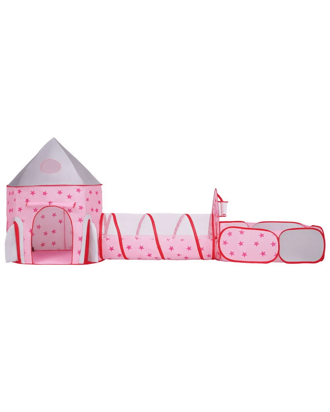 Keezi Kids Playhouse Play Tent Pop Up Castle Crawl Tunnel Basketball Hoop - Pink