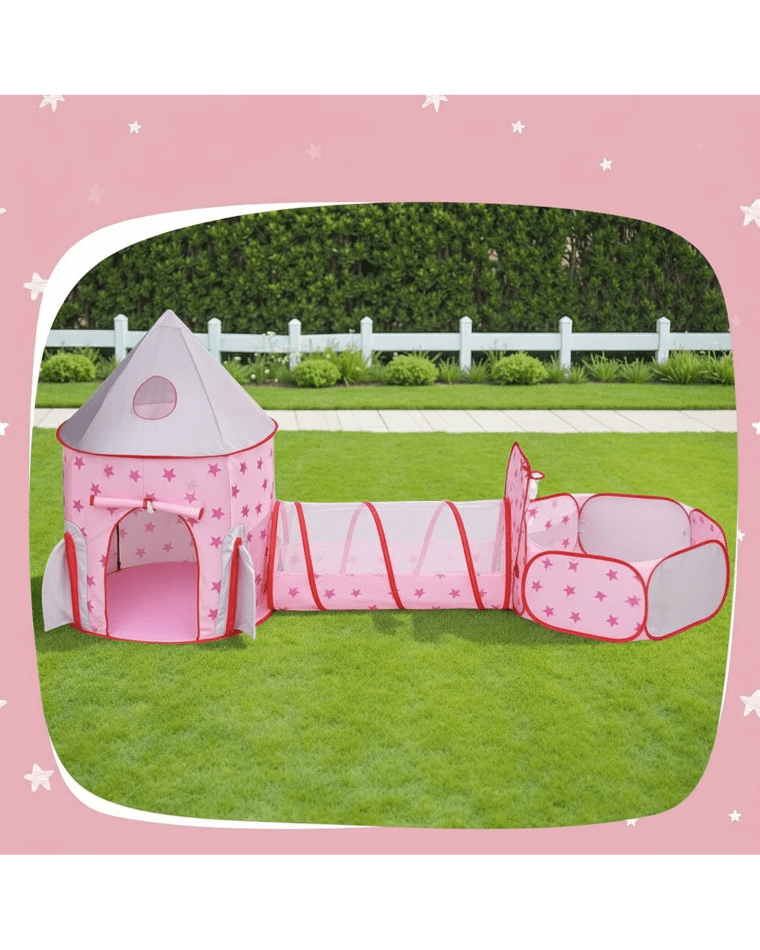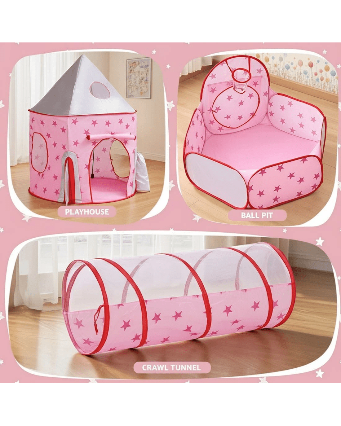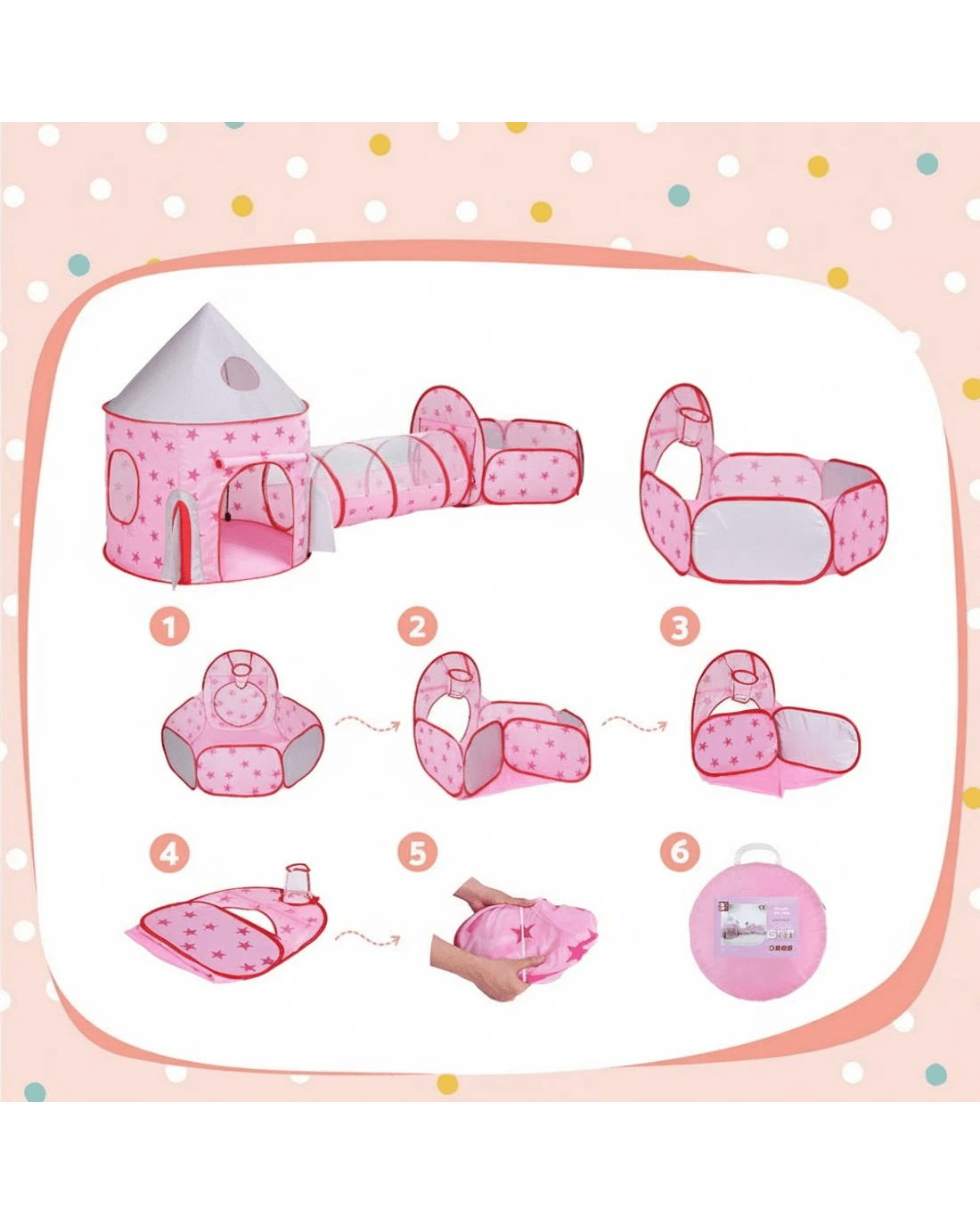 Keezi Kids Playhouse Play Tent Pop Up Castle Crawl Tunnel Basketball Hoop - Pink