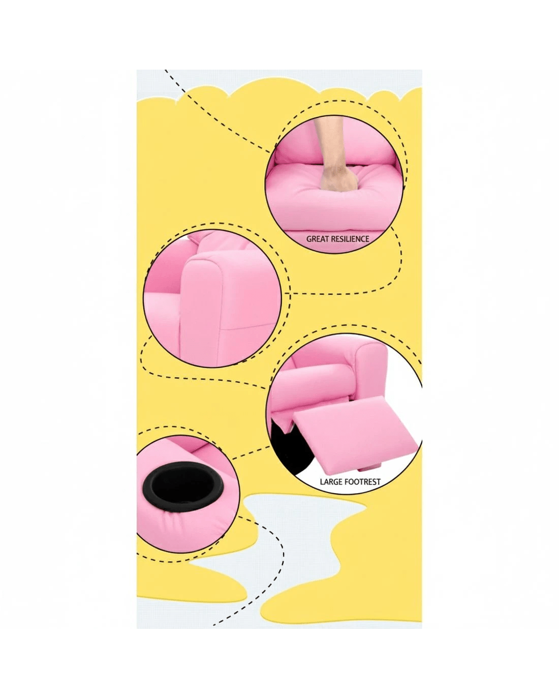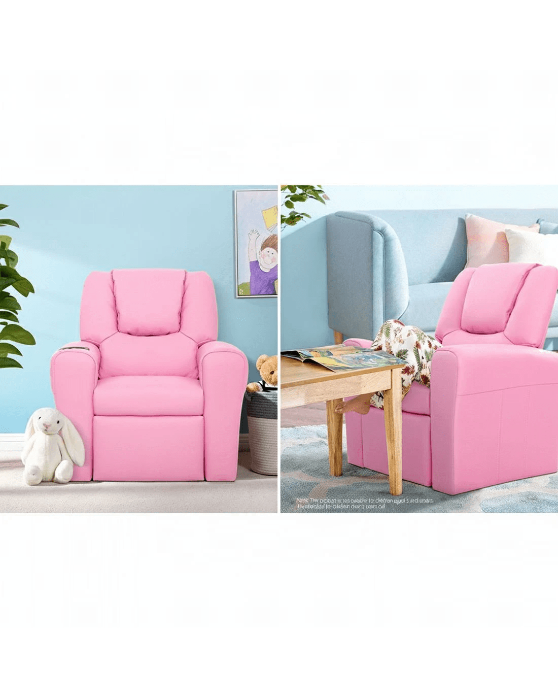 Keezi Kids Recliner Chair PU Leather Sofa Lounge Couch Children Armchair - Pink