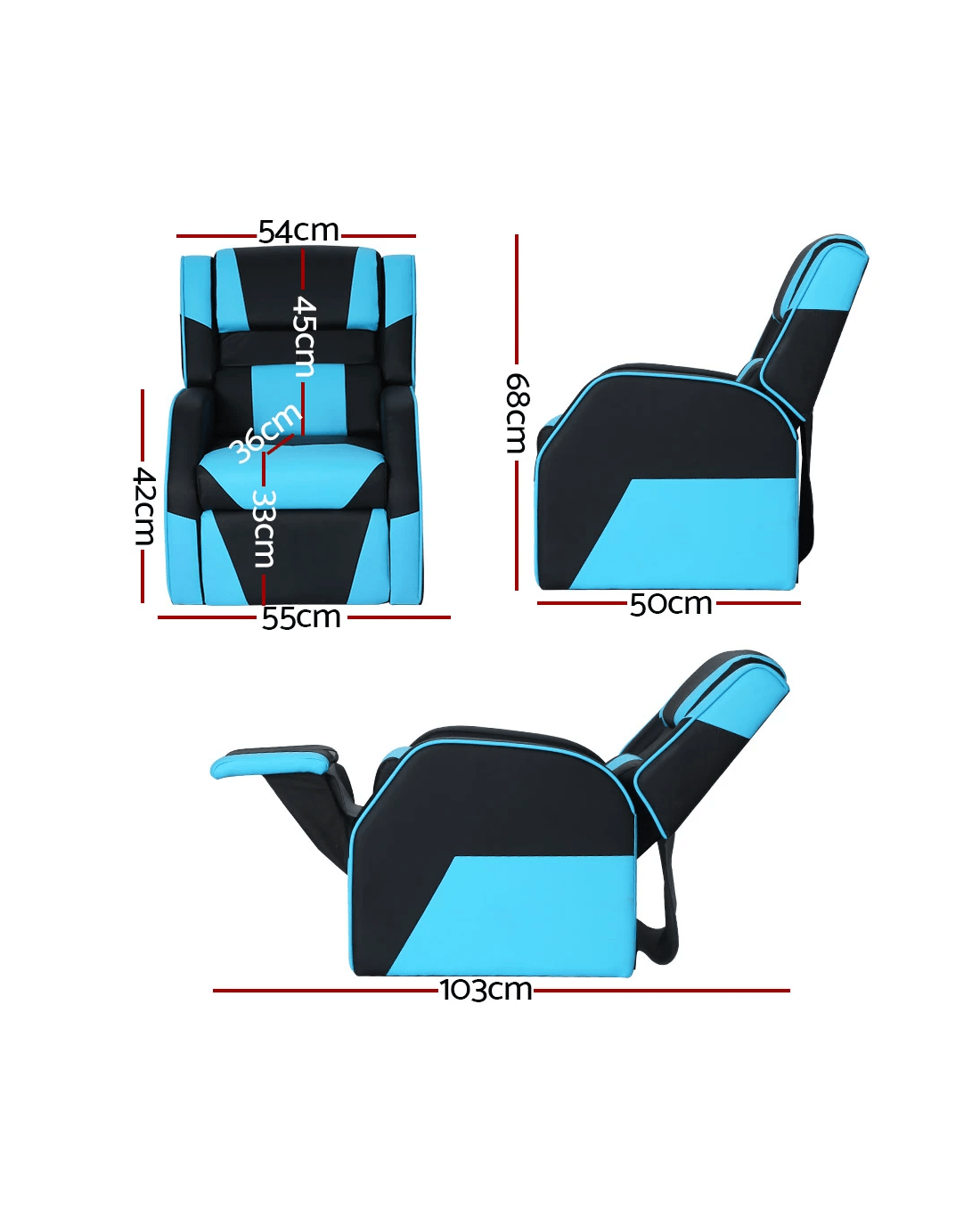 Give your kids their own private space where they can sit back and relax, read books, watch TV, play games, and eat snacks. Our Keezi Kids recliner chairs will make your little ones happy because they will be able to have a good time reclining in their very own recliner chair as you do. It makes a great gift that they can boast about among their friends. Upholstered in quality PU leather, our kids recliner chair features a modern design with impressive features. It offers a comfortable seat with soft padded and adjustable backrest and plush armrests. It comes with a headrest, lumbar cushion and an attached footrest. The triangle structure ensures stability, and the sturdy metal frame ensures durability and longlasting use. Our kids recliner chair also has an adjustable recline between 110°to 160°for your comfort and convenient sitting. Furthermore, its lightweight design makes it easy to move, and the PU leather upholstery makes it easy to keep clean. Without any hesitation, get our Keezi kids recliner chair. Your kids will love and cherish it for many years.