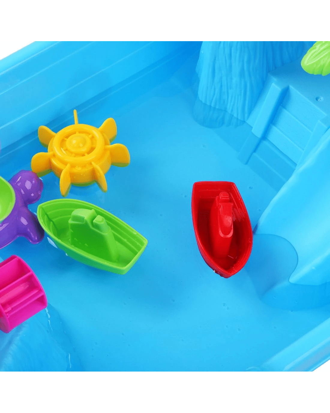 Set it up in the backyard or bring it to the beach, the Sand and Water Table's 3-leg design ensures the assembly stays firm and steady on both sand and water despite its light weight. Your kids will have a whale of a time playing with the boat slide, spinning wheel, rotating sand bucket and more as he or she takes on the role of the captain of the ship. Better still, use the Table and sand mould to create sand castles for more whimsical imaginations.