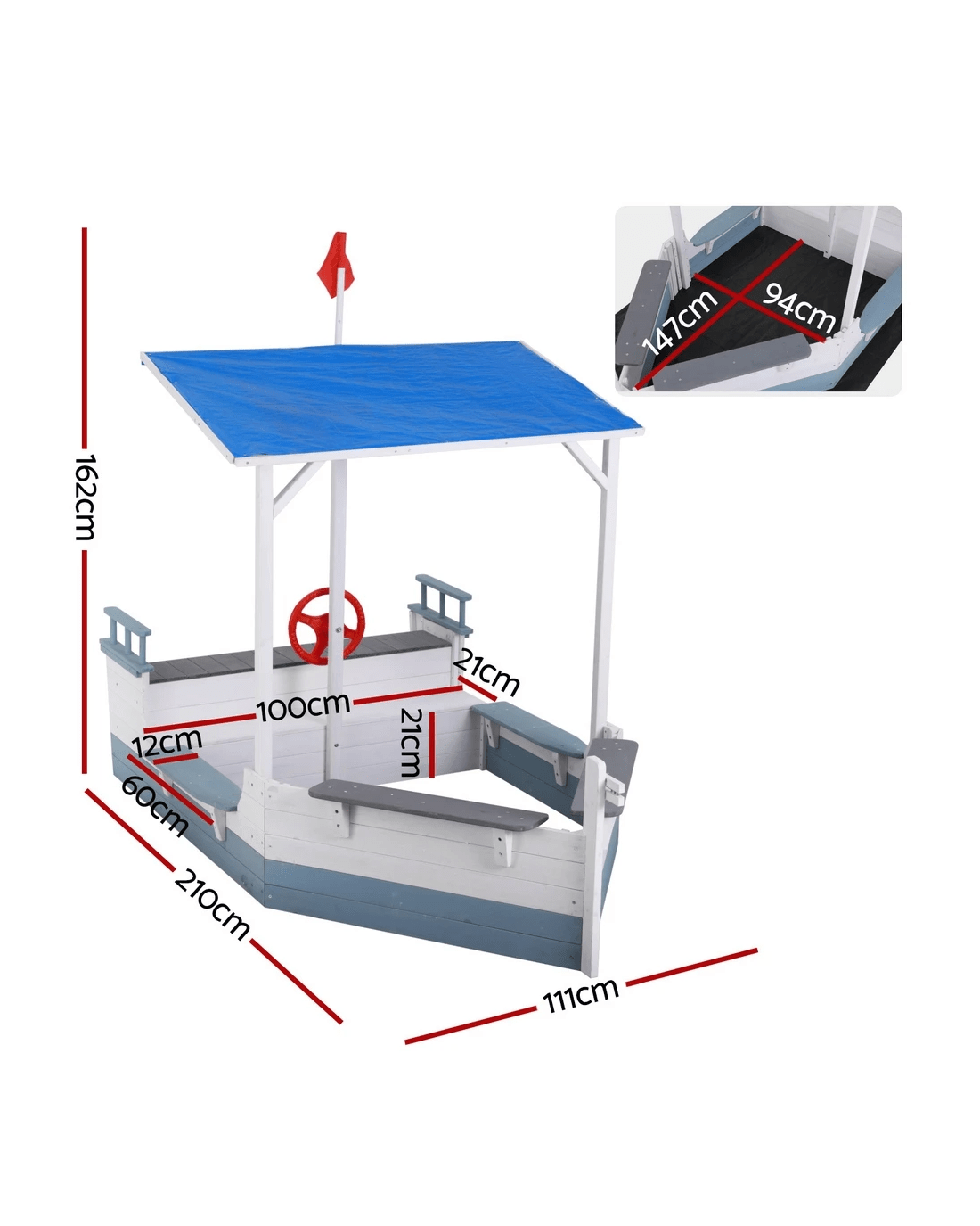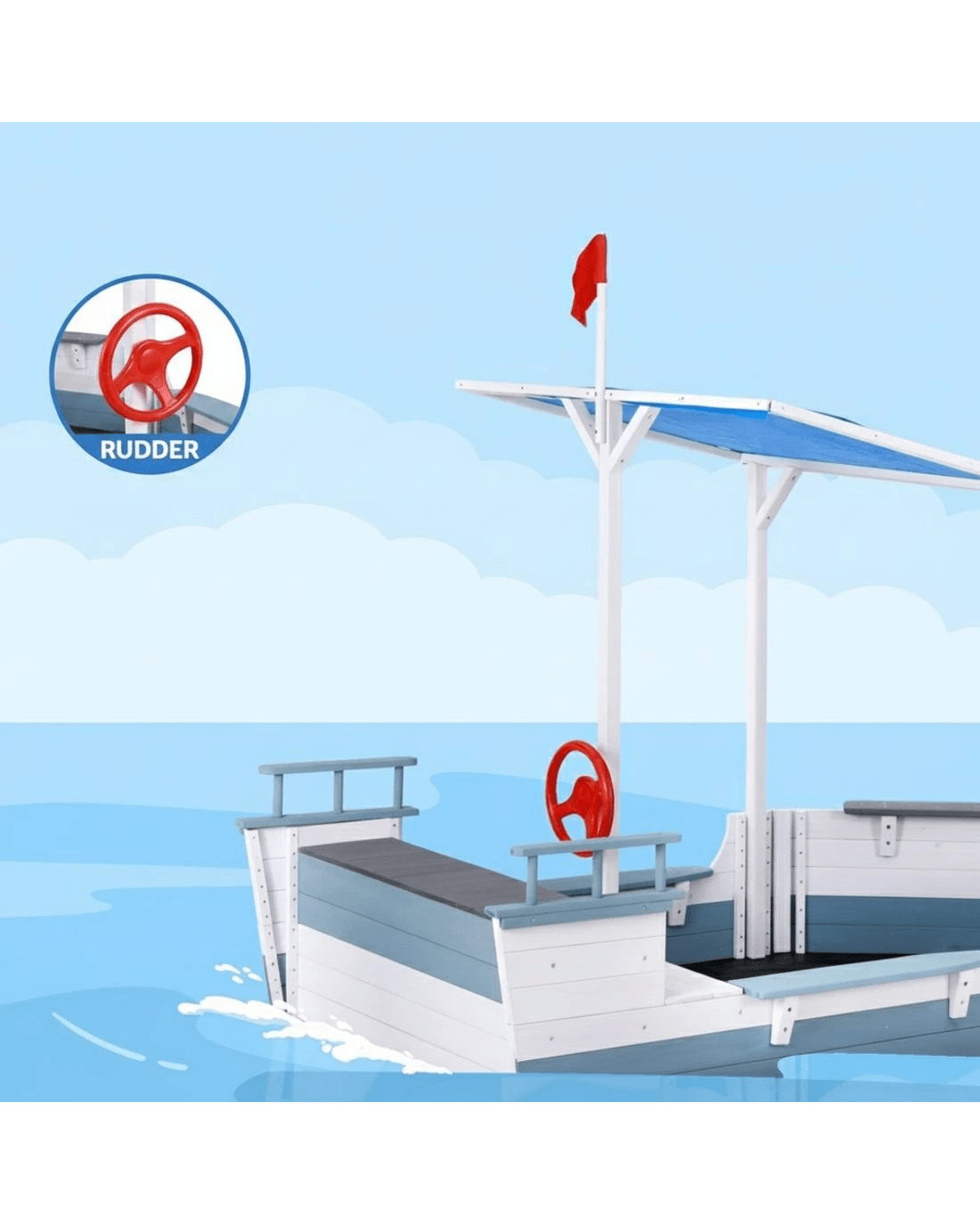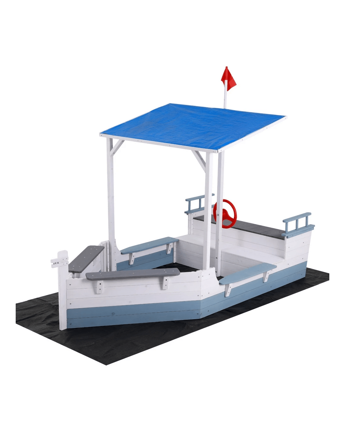 Keezi Kids Sandpit Wooden Box Boat Canopy Flag Outdoor Toys Children - Multi