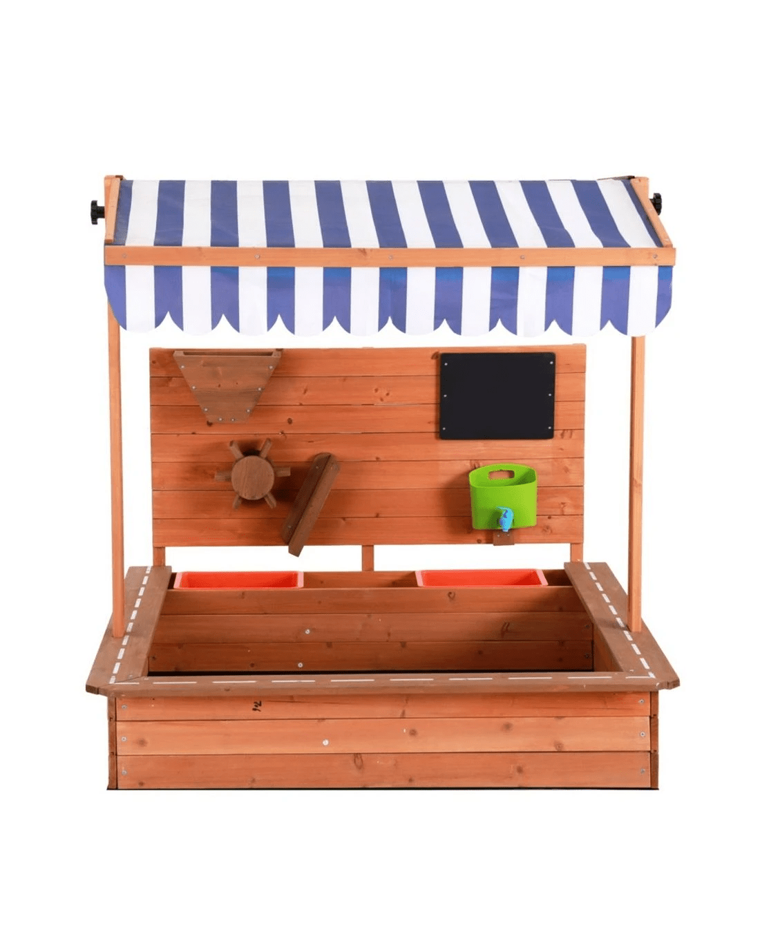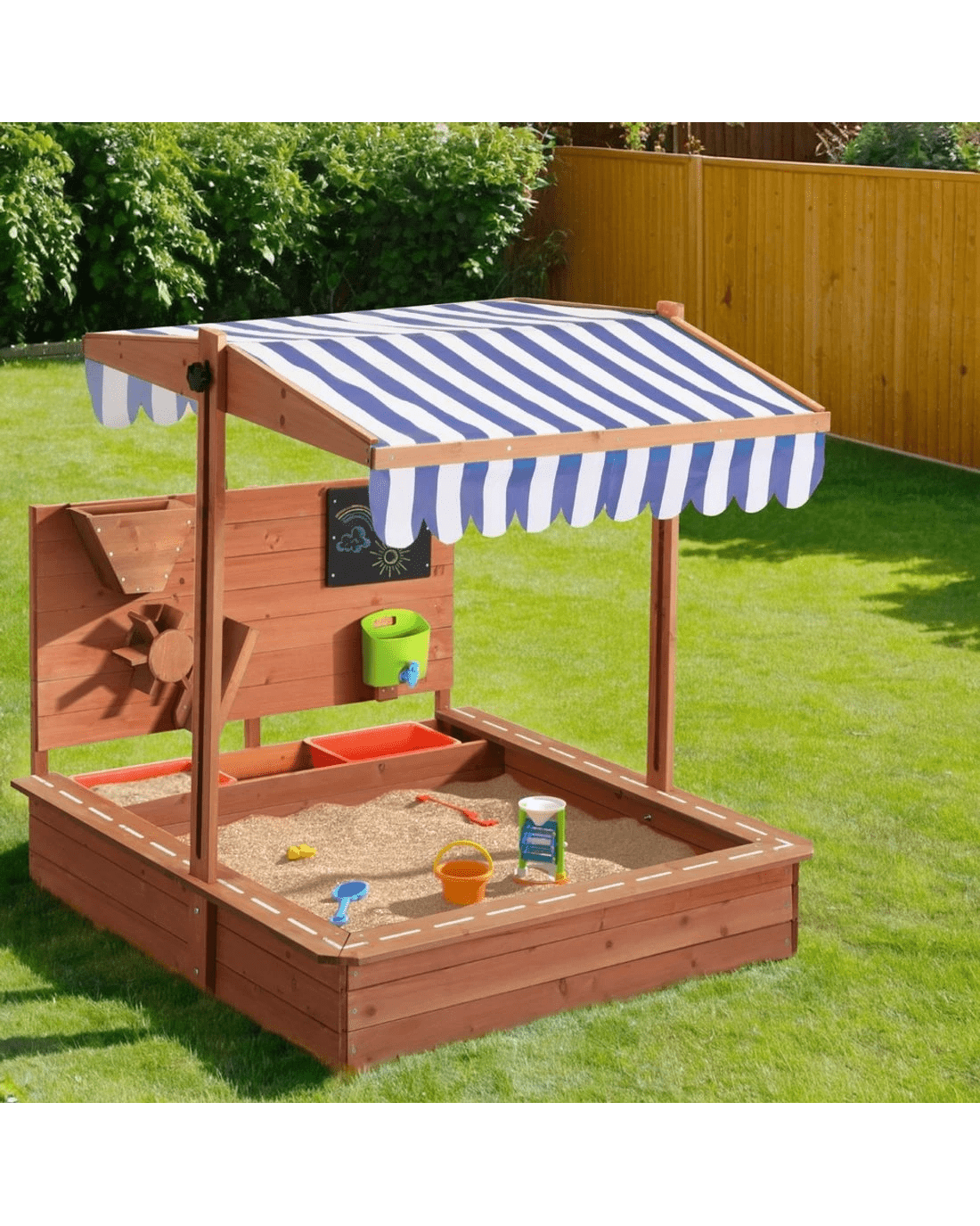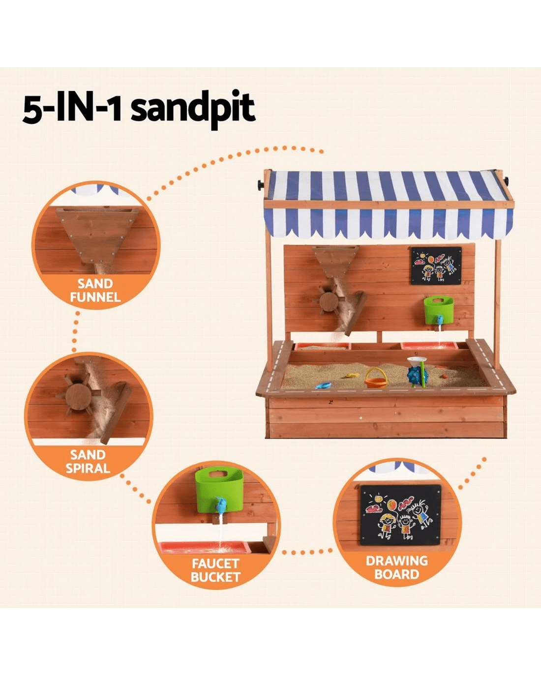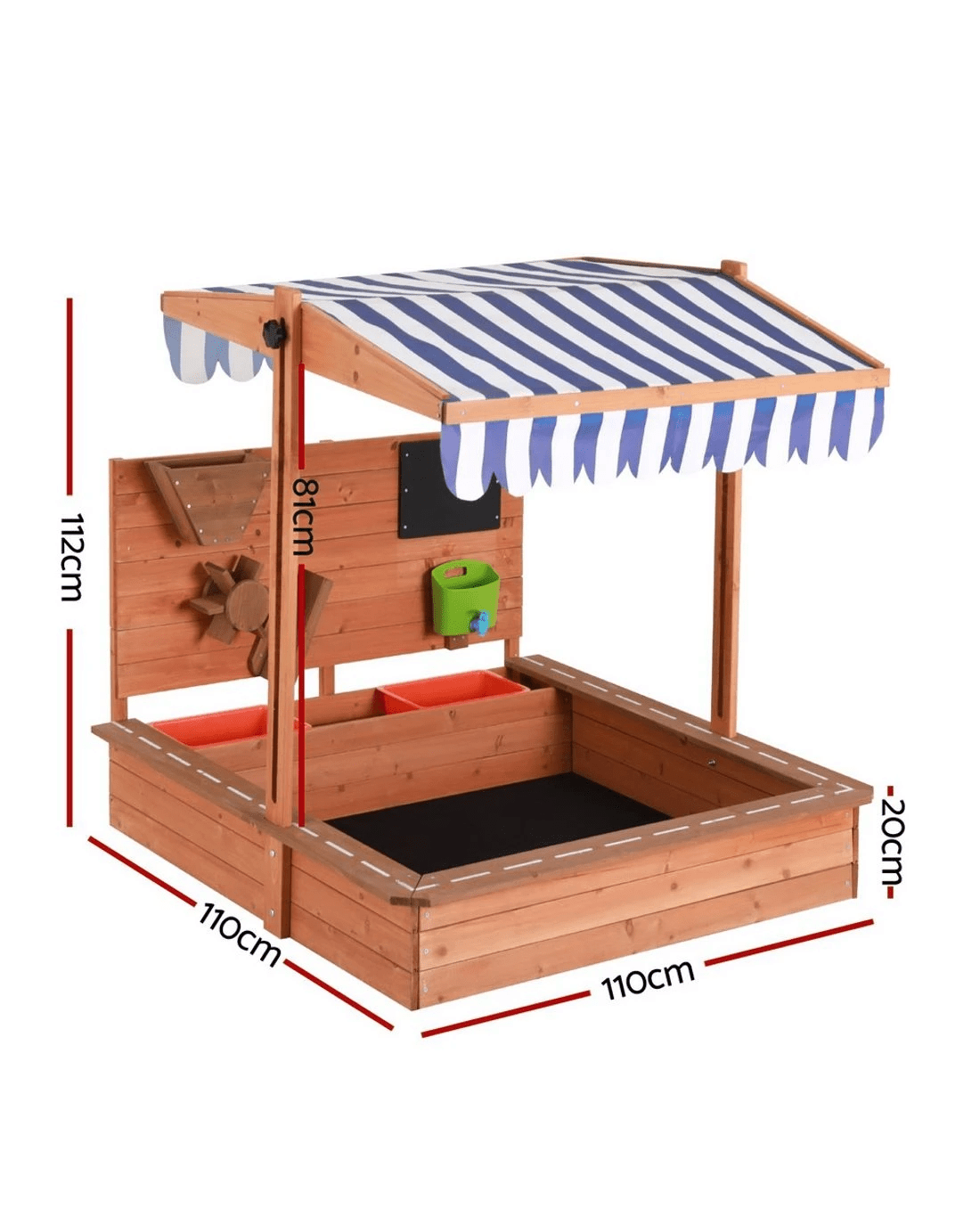 Keezi Kids Sandpit Wooden Canopy Sandbox With Cover Funnel Outdoor Toys 110cm Durable Space Saving Modern Decor - Brown