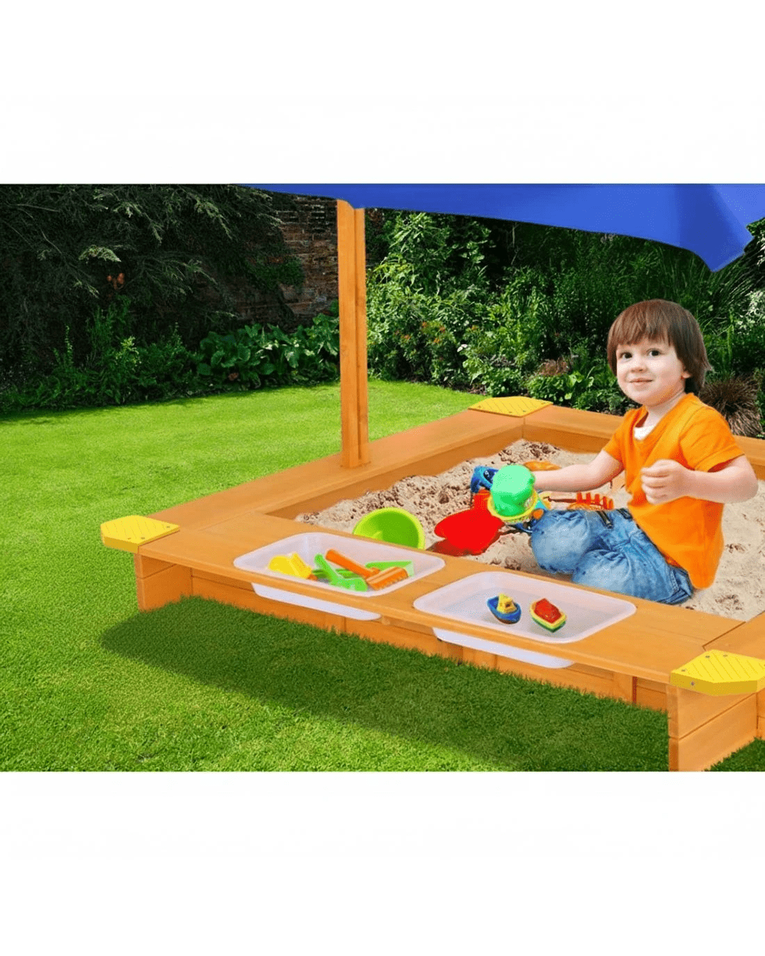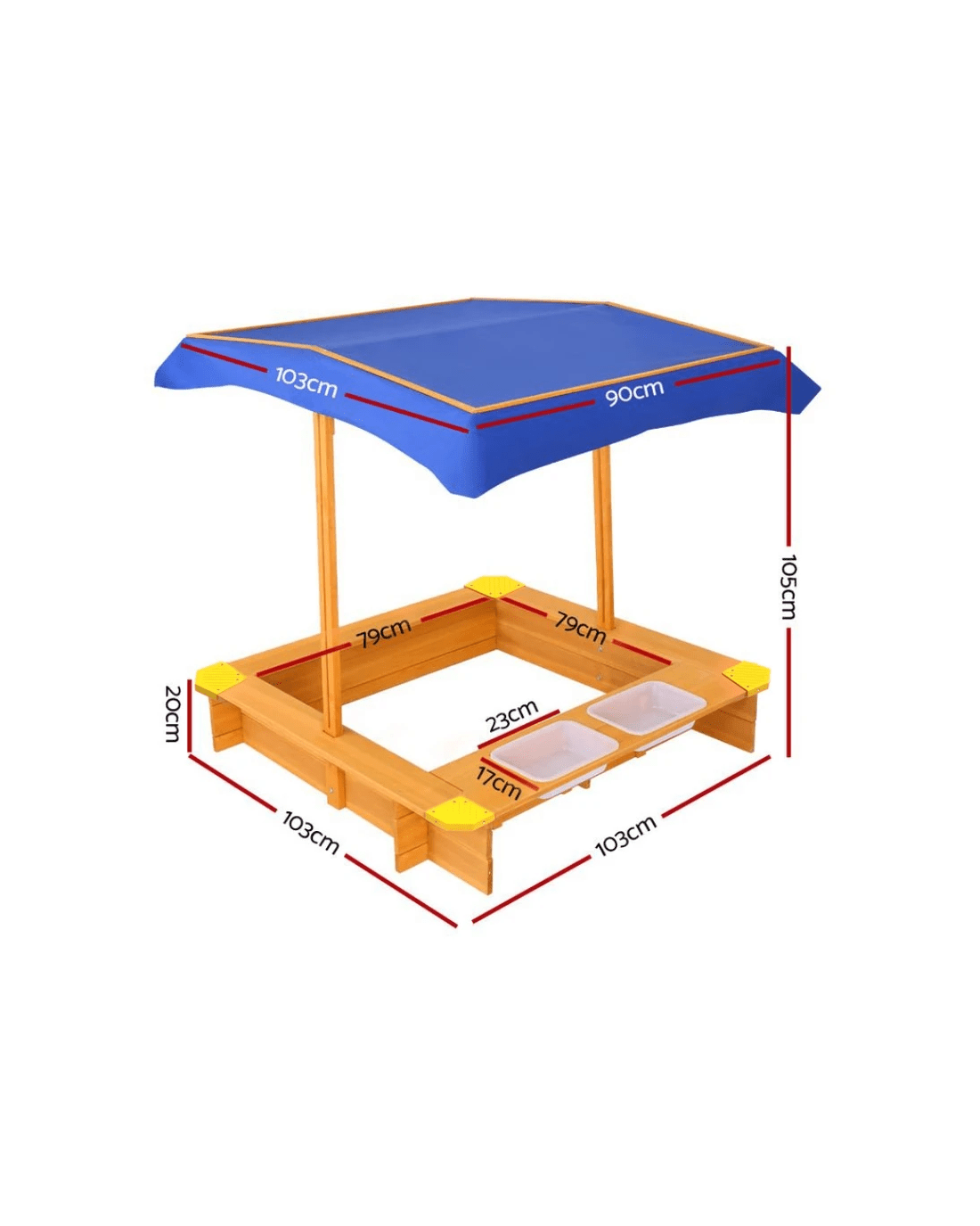 Keezi Kids Sandpit Wooden Sandbox Pit with Canopy Water Basin Toys 103cm - Multi