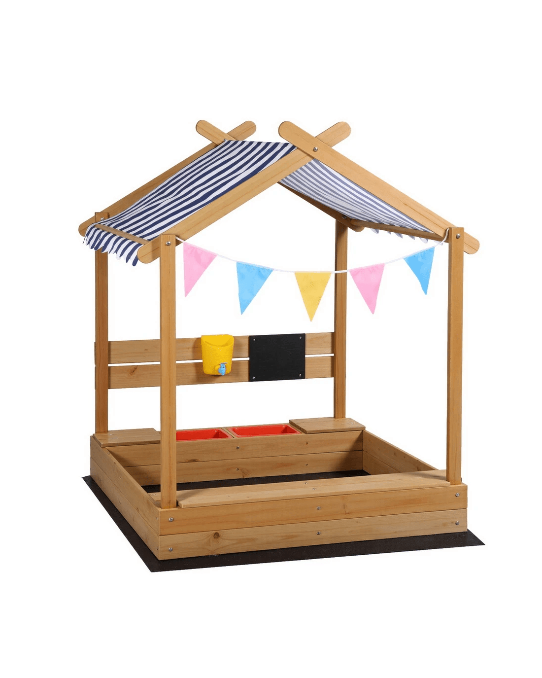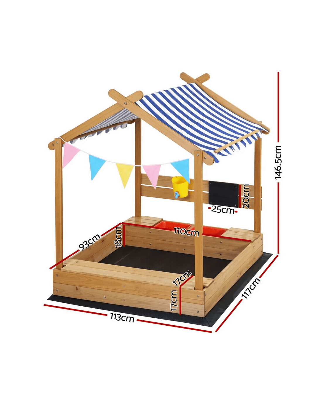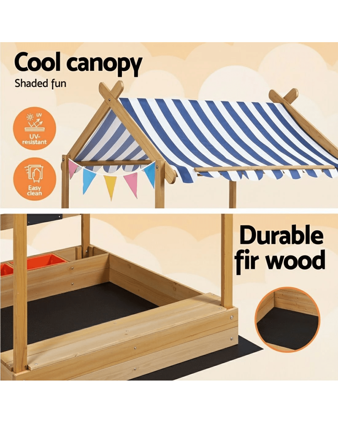 Keezi Kids Sandpit Wooden Sandbox Pit with Canopy Water Basin Toys 146cm - Natural