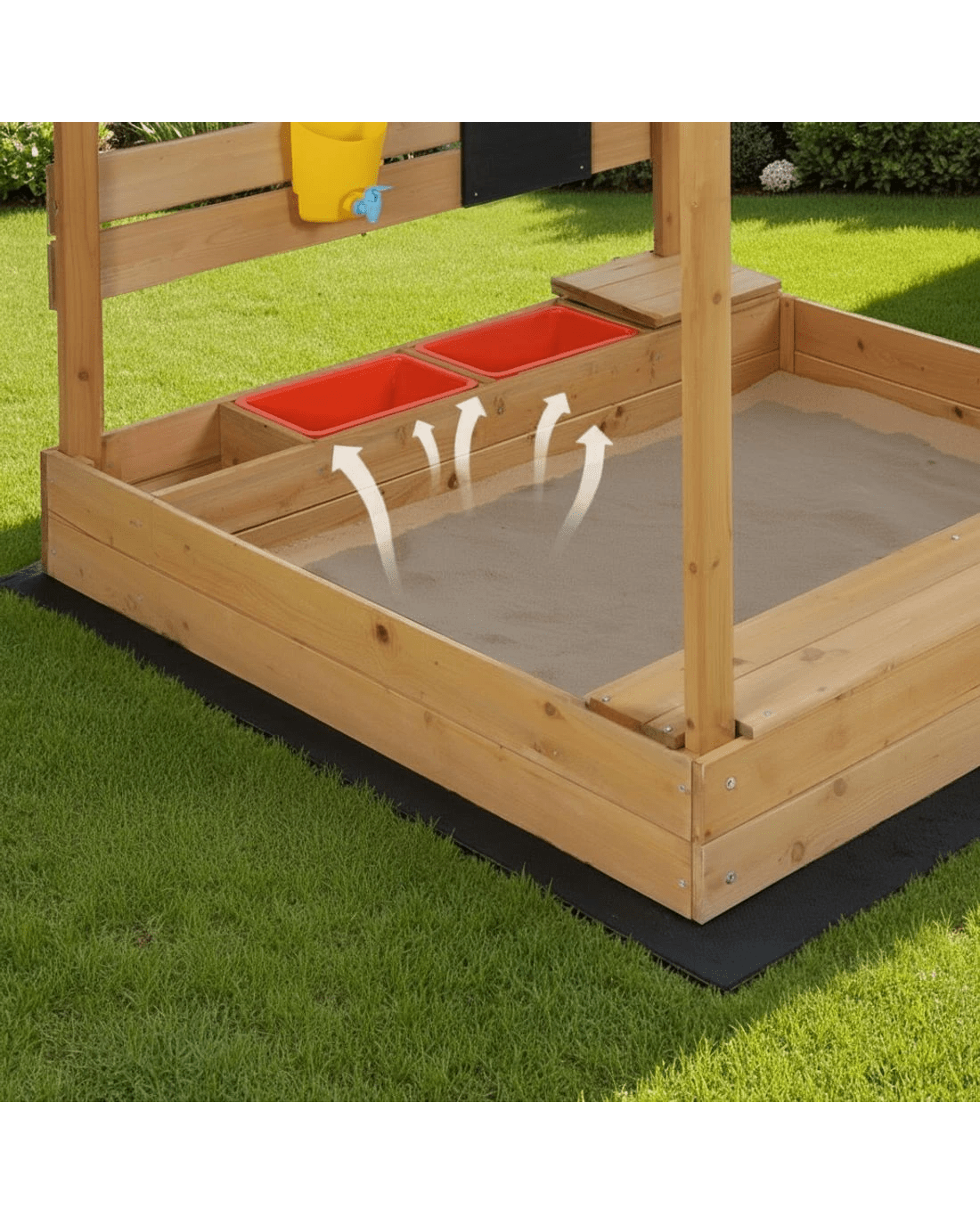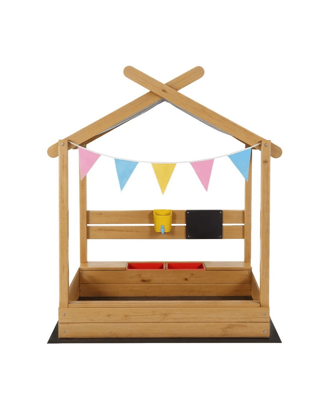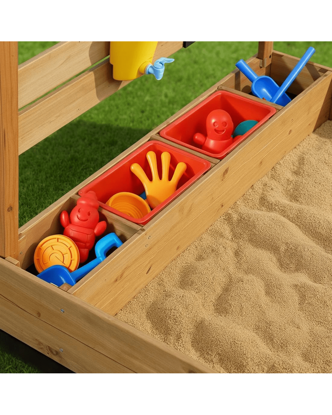 Keezi Kids Sandpit Wooden Sandbox Pit with Canopy Water Basin Toys 146cm - Natural