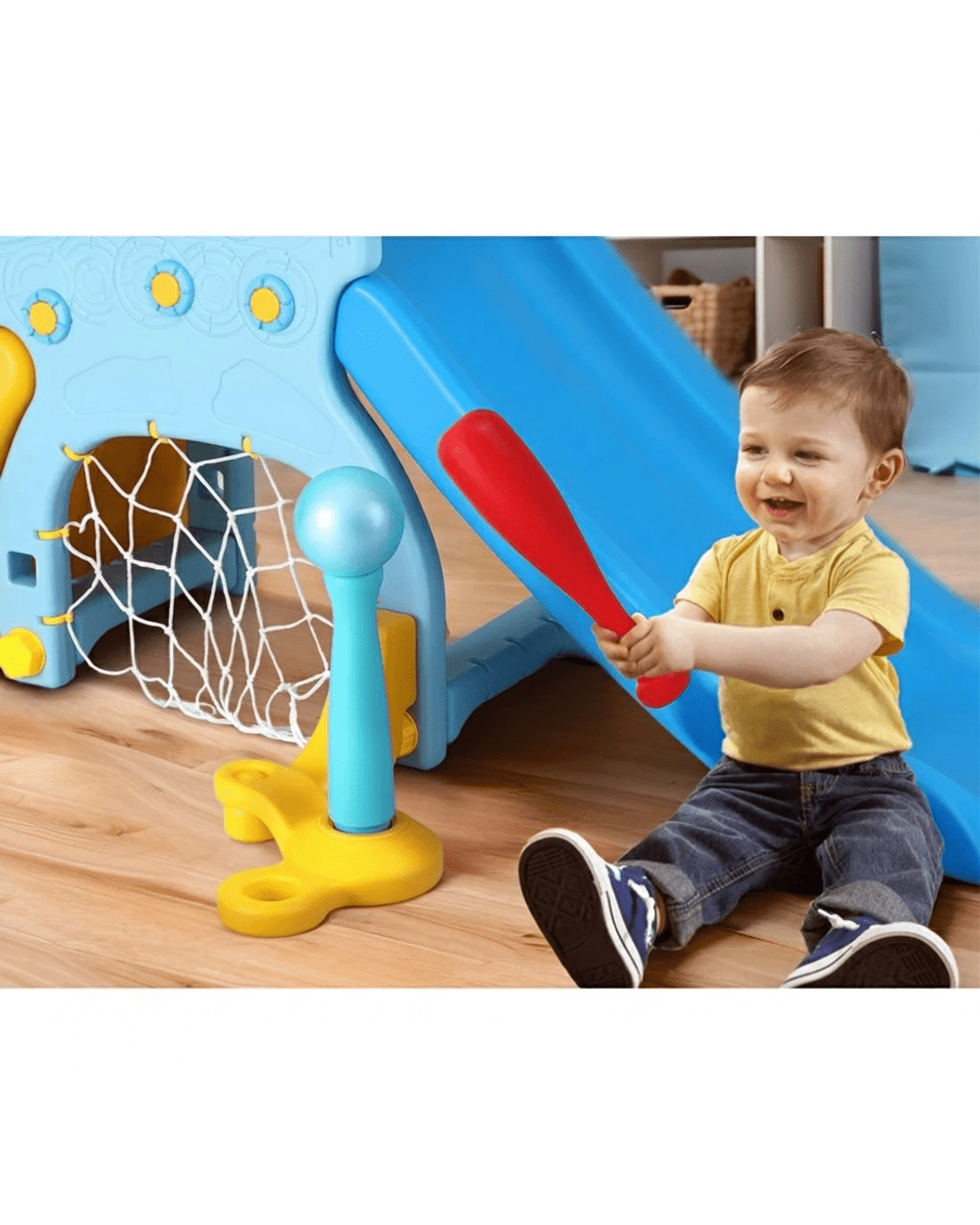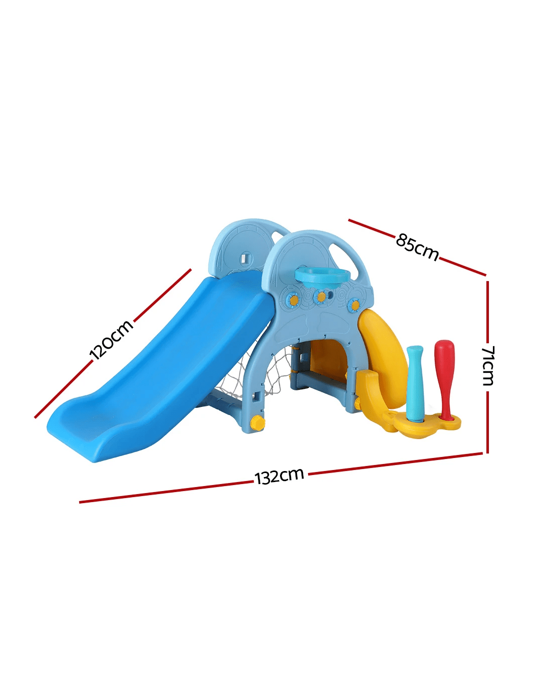 Keezi Kids Slide Set Baseball Bat Basketball Hoop Outdoor Playground 120cm - Blue