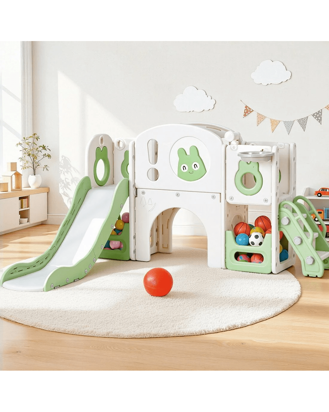 Keezi Kids Slide Swing Set Ball Hoop Rings Football Outdoor Toys - Multi
