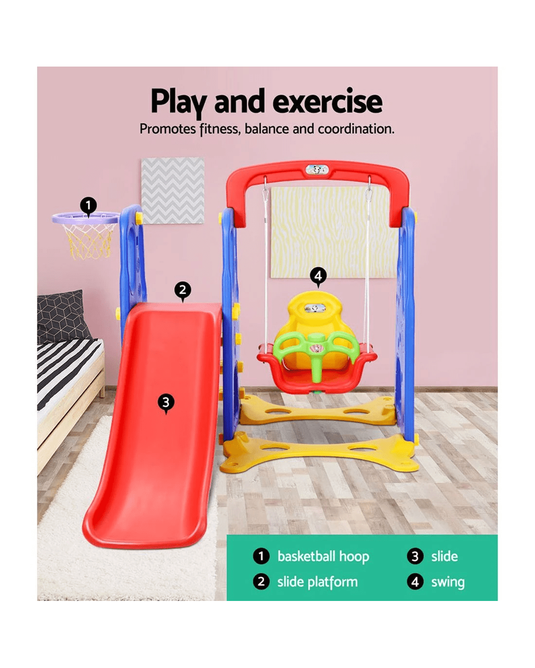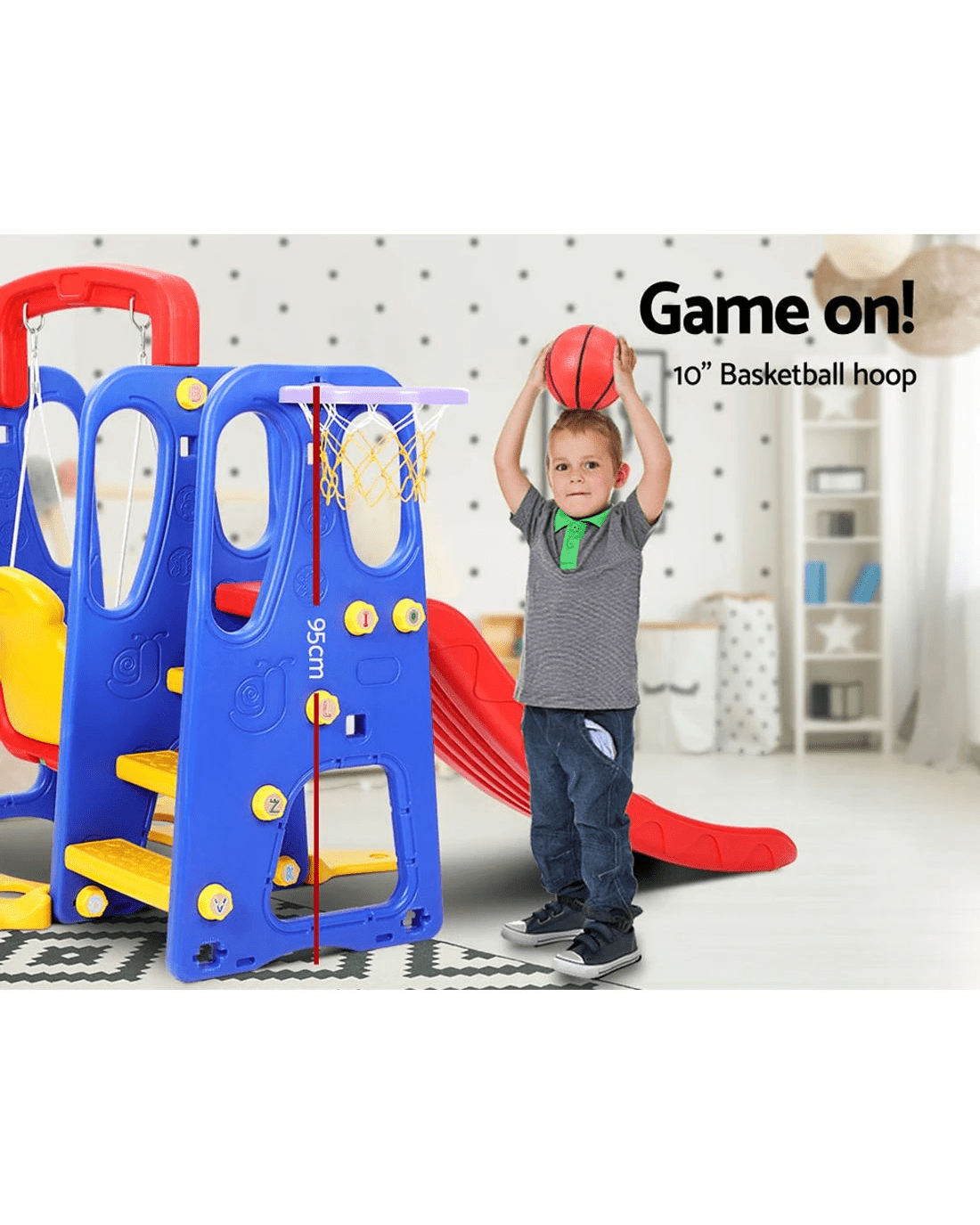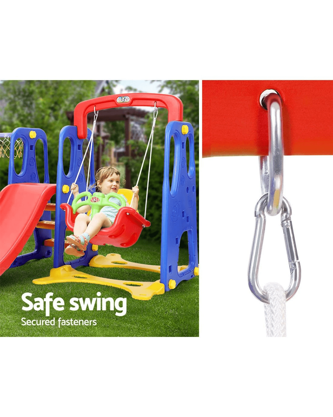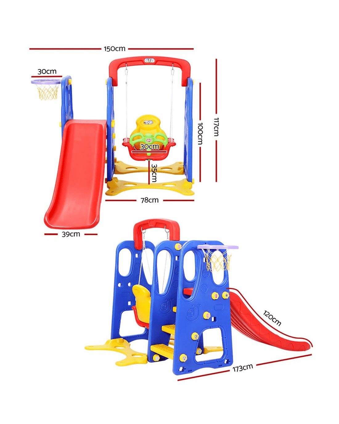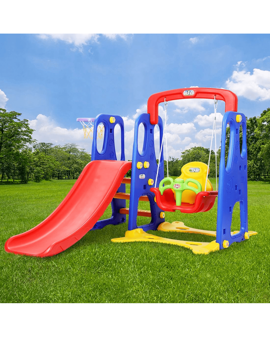 Keezi Kids Slide Swing Set Basketball Hoop Outdoor Playground Toys 120cm - Multi