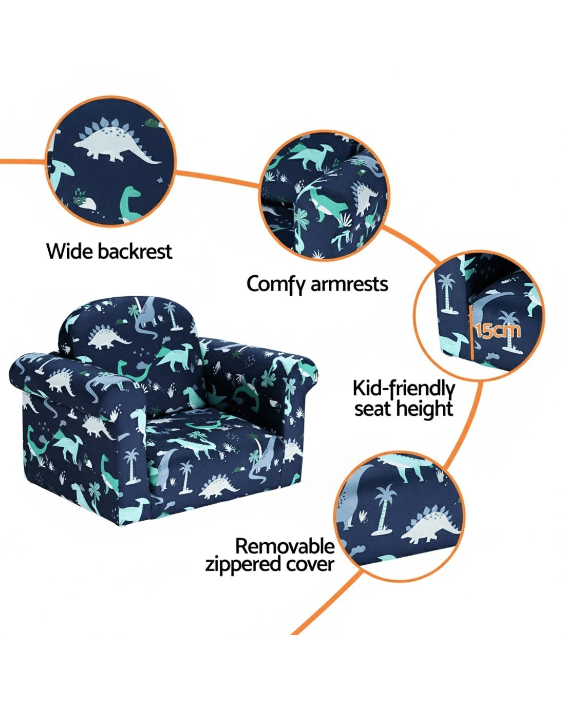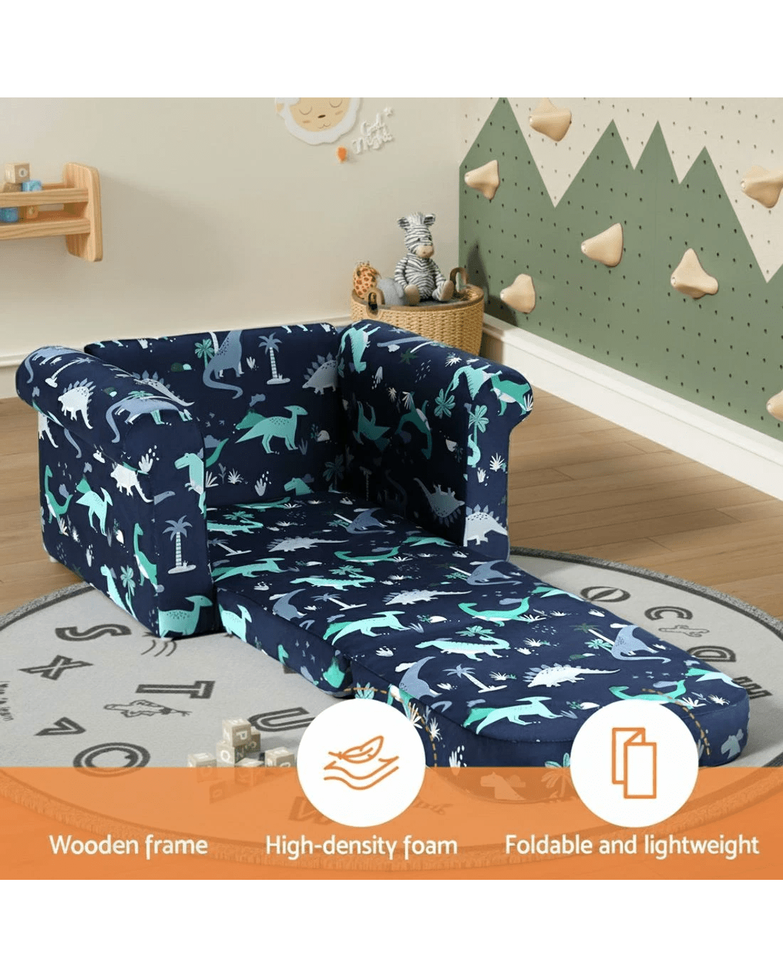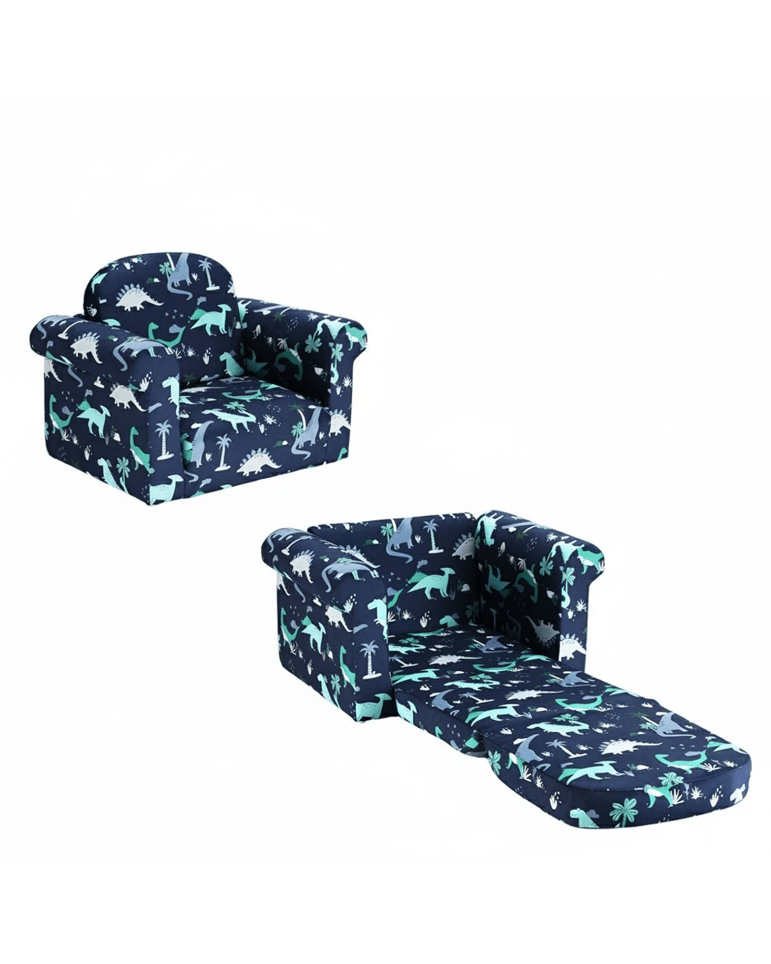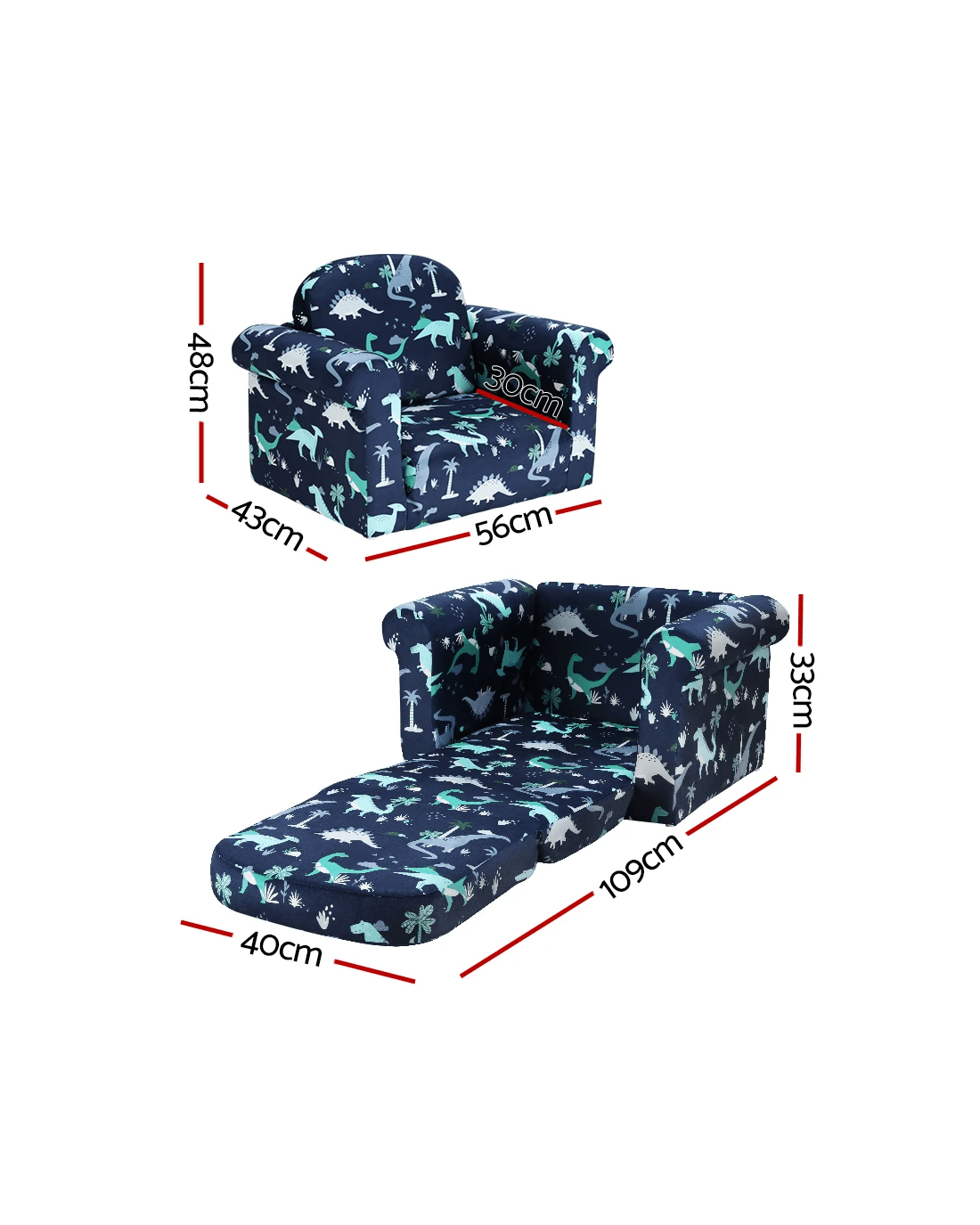 Sold by Aisle SixKeezi Kids Sofa 1 Seater Children Flip Open Couch Lounger Armchair Dinosaur Navy - Natural