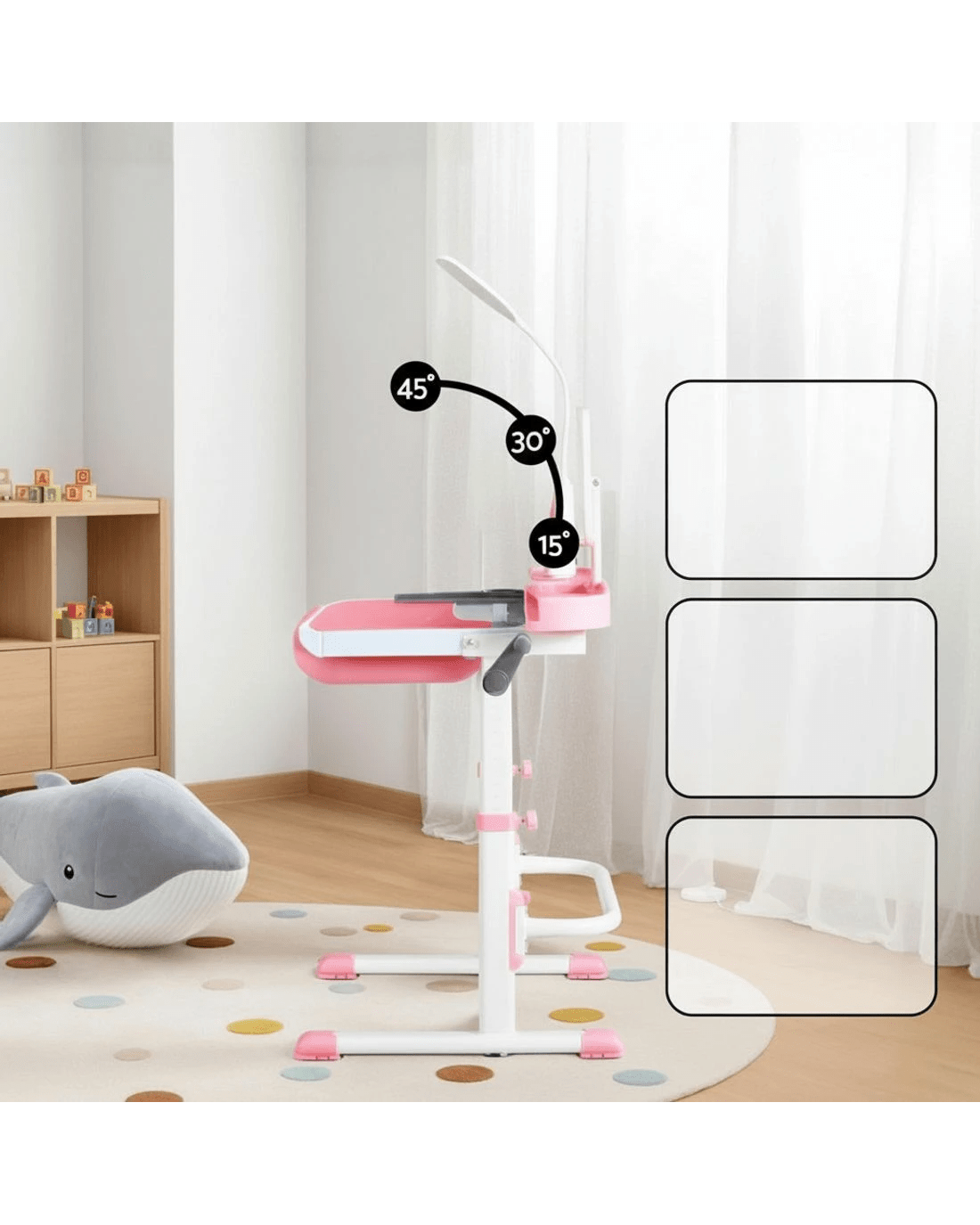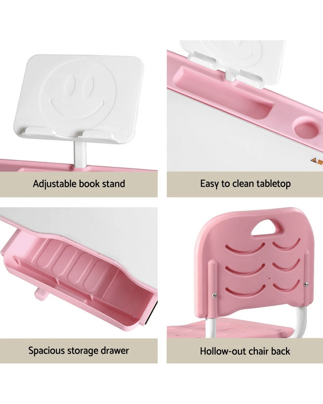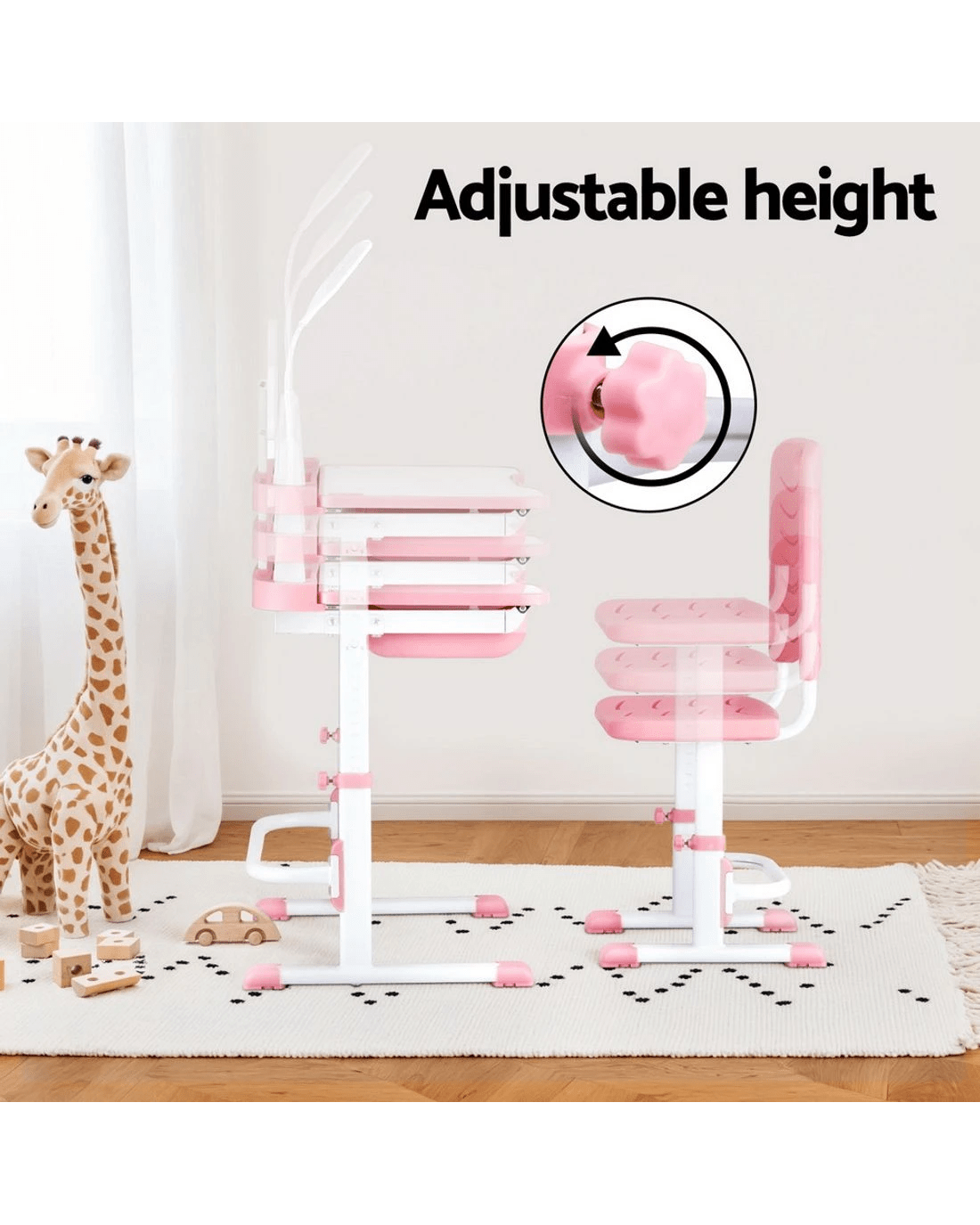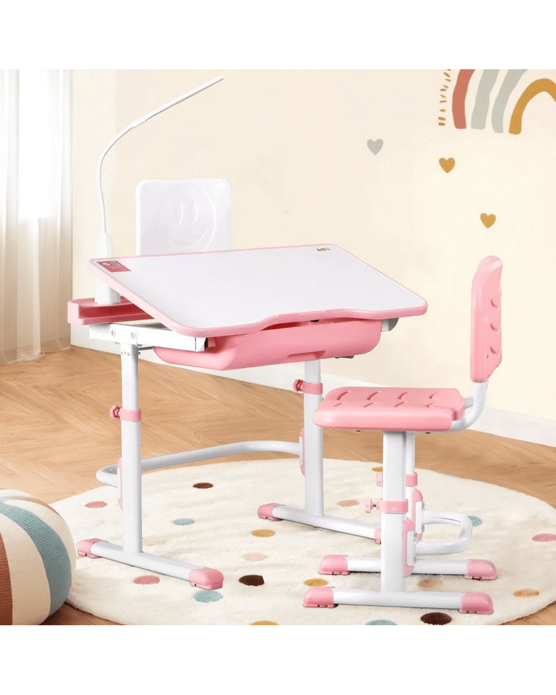 Create a cosy learning corner with the Keezi Kids Table & Chair Set featuring a built-in LED lamp and adjustable design. Perfect for growing children, this study desk adapts to your child's height with smooth adjustments, ensuring ergonomic comfort during homework, crafts, or reading sessions. The built-in LED lamp provides gentle, eye-friendly lighting, while the handy book stand keeps stories and textbooks at the perfect angle. Made from non-toxic, wipe-clean PP material and reinforced with sturdy construction, this set prioritises safety with rounded edges and a robust build. The roomy storage drawer encourages tidiness, and fuss-free assembly means more playtime, less setup time. A practical gift that grows with toddlers and school-aged kids alike!