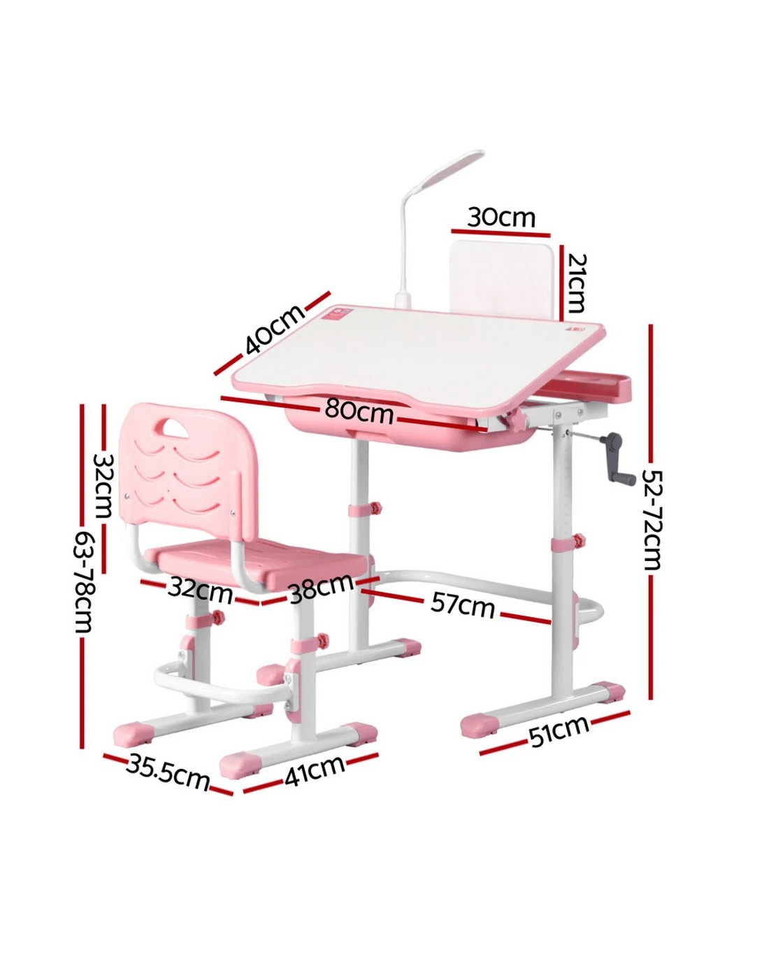 Sold by Aisle SixKeezi Kids Table and Chair Set Adjustable Study Desk w/ LED Lamp Reading - Pink