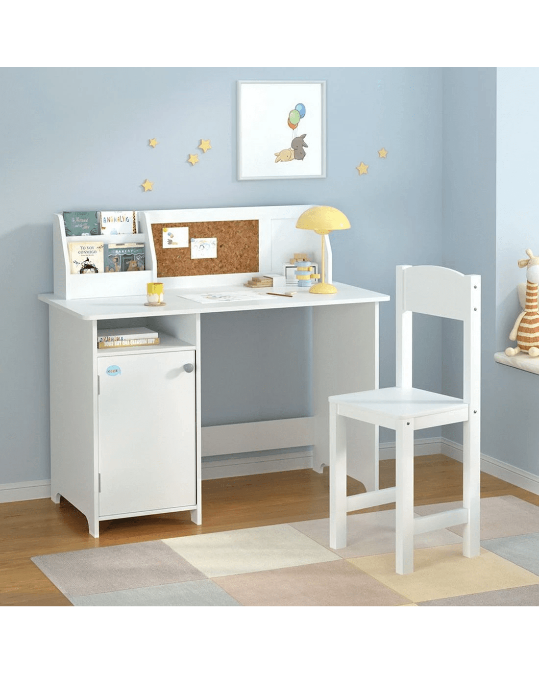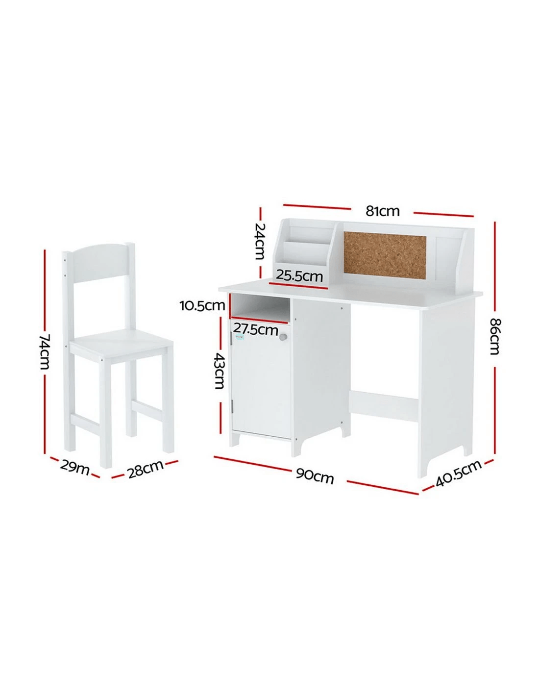 Keezi Kids Table and Chair Set Children Study Play Toys Desk w/ Cabinet - White