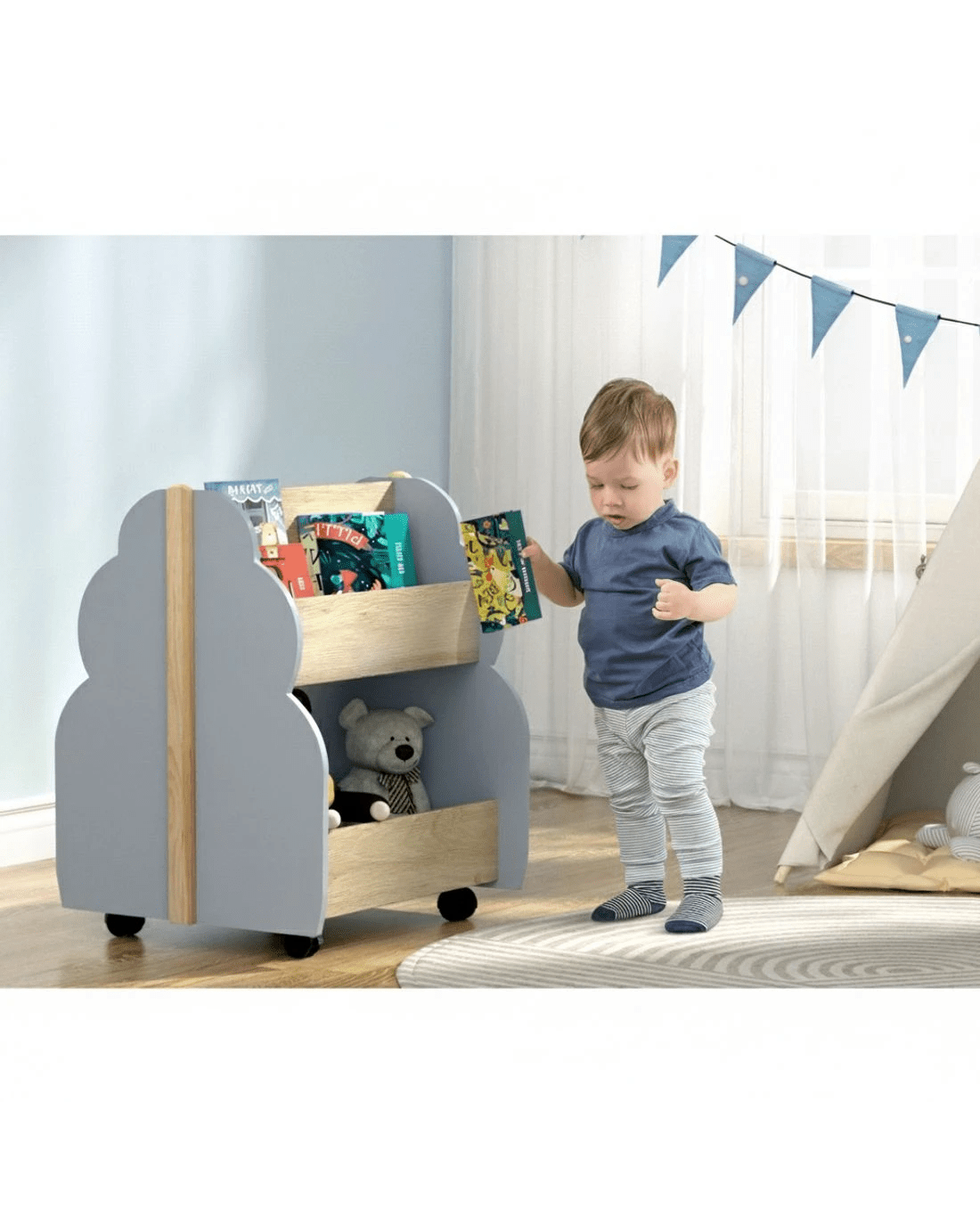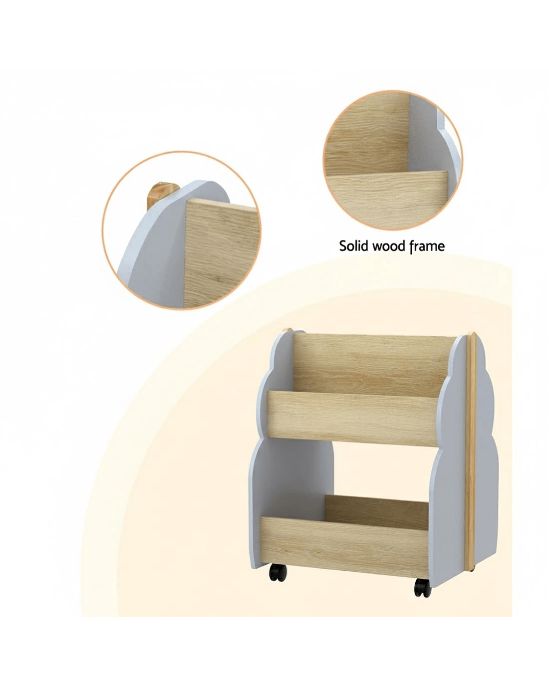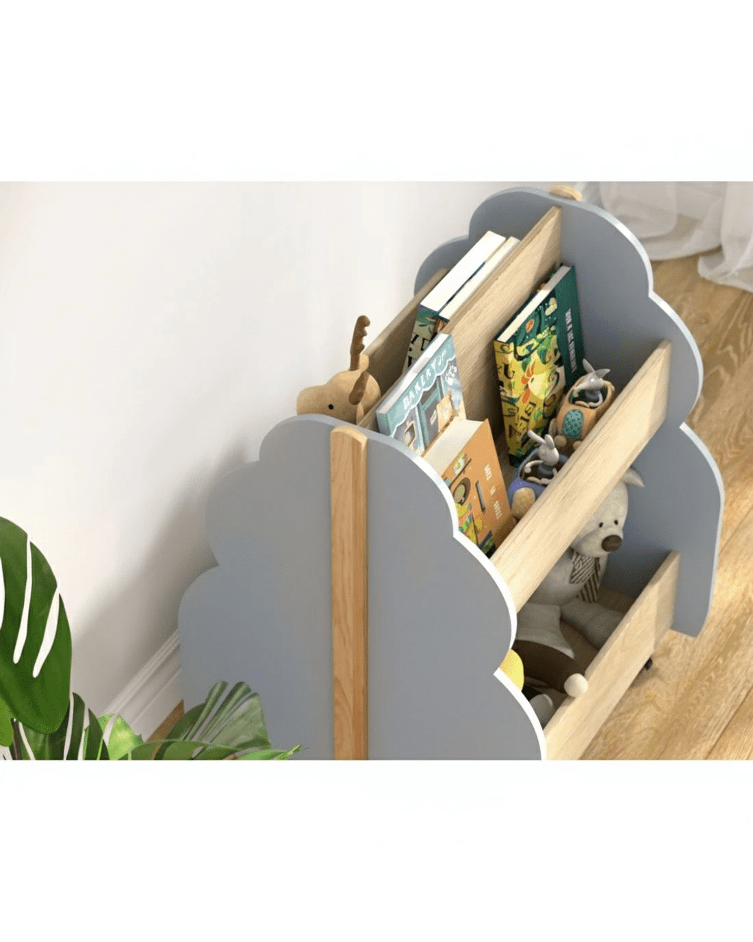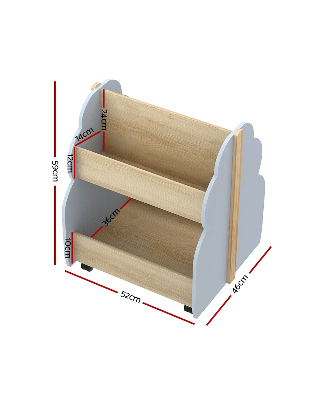 Foster a love of reading from an early age with a Keezi Kids Bookshelf. Our shelves come with everything you need to nurture your child's growing development and literacy skills. Each shelf is constructed from quality MDF board on a solid wood frame that will support your child's love of reading from 3 years and above. With two double-sided tiers, the bookshelves have ample space for books, magazines and reading materials of all sizes. Four smooth wheels (two of which are lockable) can help you move the shelf around or keep it in place. The shelves are the ideal height for young children and feature rounded edges for safety. With their whimsical tree-shaped design, your shelves will look perfectly in place in your playroom, bedroom, family room or even your local daycare or kindergarten. Easy to put together and simple to clean and maintain, our kid's bookshelves are the storage of dreams, fantasy and reality for every child.