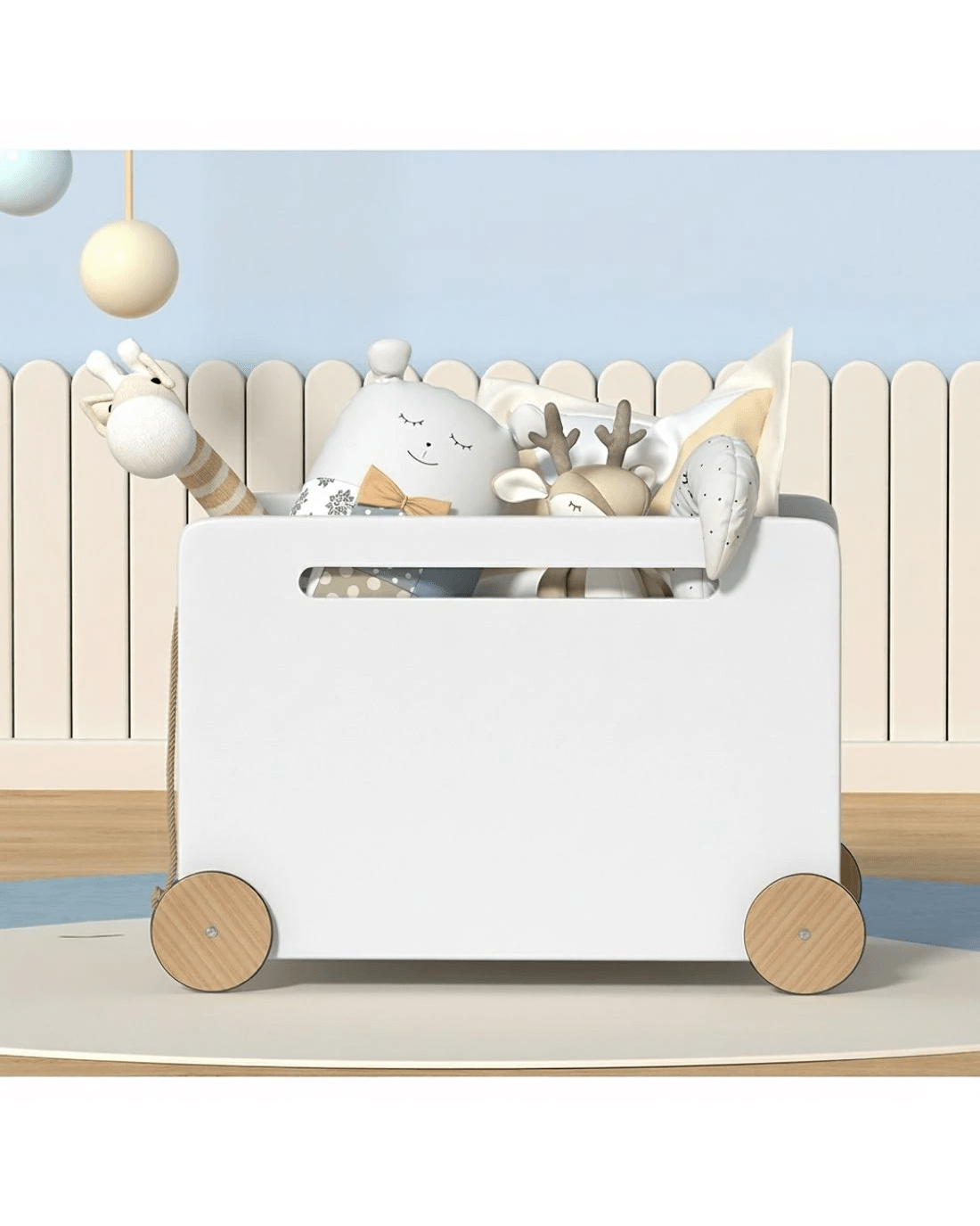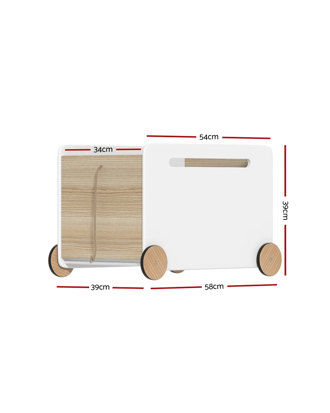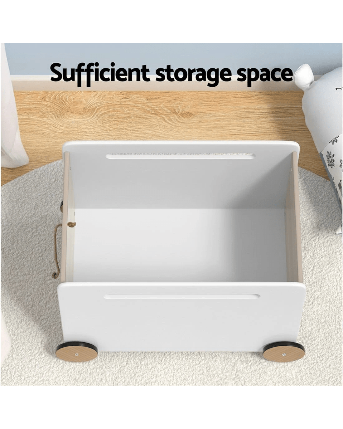 Foster your child's imagination with the practical and portable Kids Storage Box from Keezi. This magical box is designed to bring joy and organization to any playroom, bedroom, or living room. Made from sturdy MDF board, it ensures durability and longevity, even in the hands of the most energetic toddlers. With its multi-purpose design, the toy box can be used to store not only toys but also books, blankets, or any other treasures your child may have. The air gap handles make it easy and safe for little hands to push and carry, while the rounded edges prevent bumps and scrapes during playtime. The box comes with four smooth wheels and an easy-to-pull rope for easy wheeling around the home. With a 30kg capacity, the toy box allows for a clutter-free environment, keeping your home tidy and your child happy. Easy to assemble and even easier to maintain, you can say goodbye to messy rooms with the delightful Kids Storage Box from Keezi.
