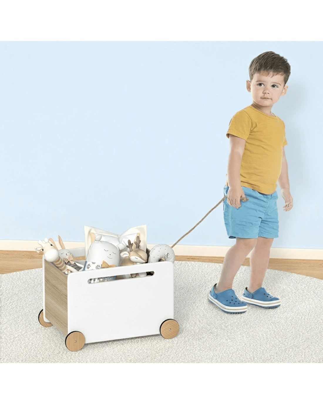 With rope and wheel for easy pulling