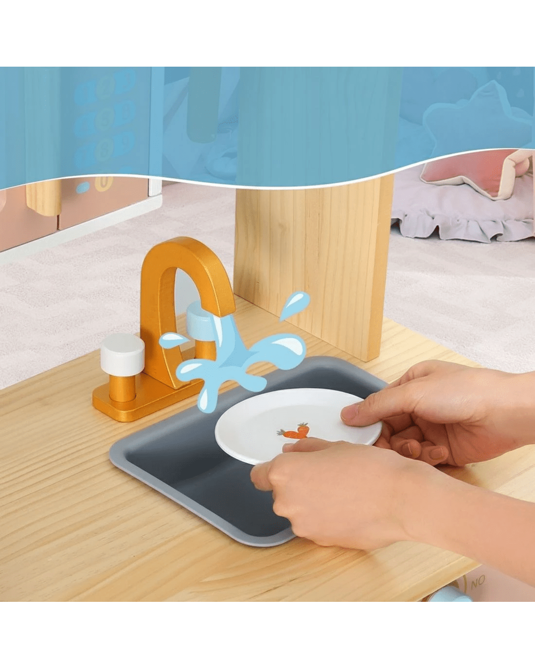 Keezi Kids en Pretend Kitchen Play Sets Cooking Toys Pot Pan Bowls Oven Dishwasher 80CM - Multi