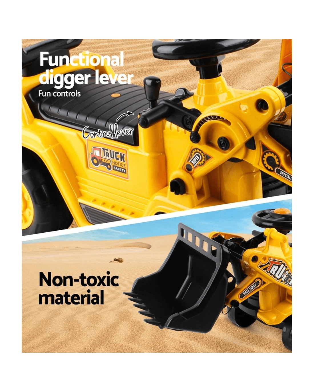 Keezi Ride on Car Toys Kids Excavator Bulldozer Sandpit Digger Car Pretend Play Durable Space Saving Sturdy - Yellow