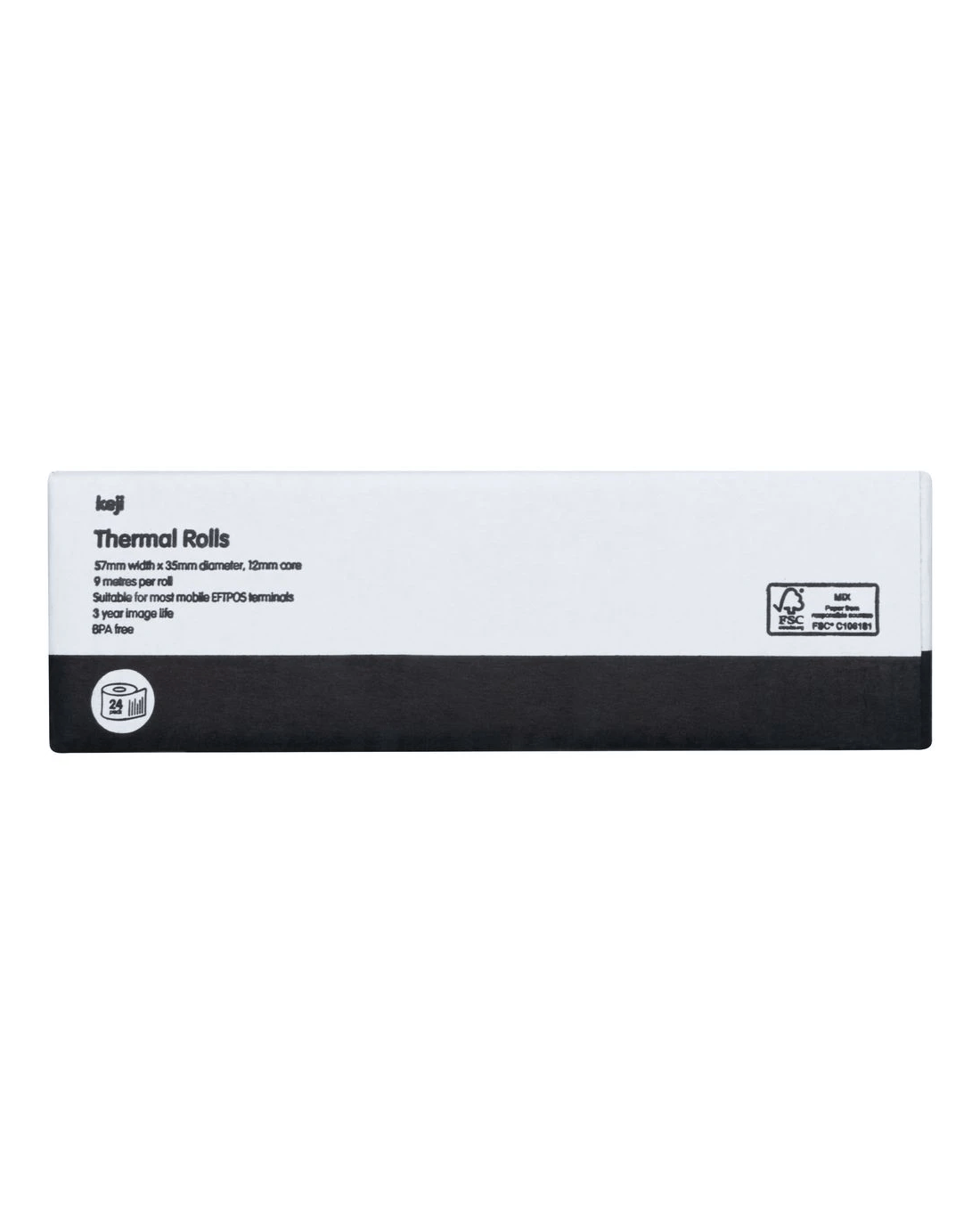 These Keji Thermal Rolls are made from FSC-certified paper that's BPA-free, making it a responsible choice. It's suitable for most mobile and fixed line EFTPOS machines and a ribbon is not required to image the paper.