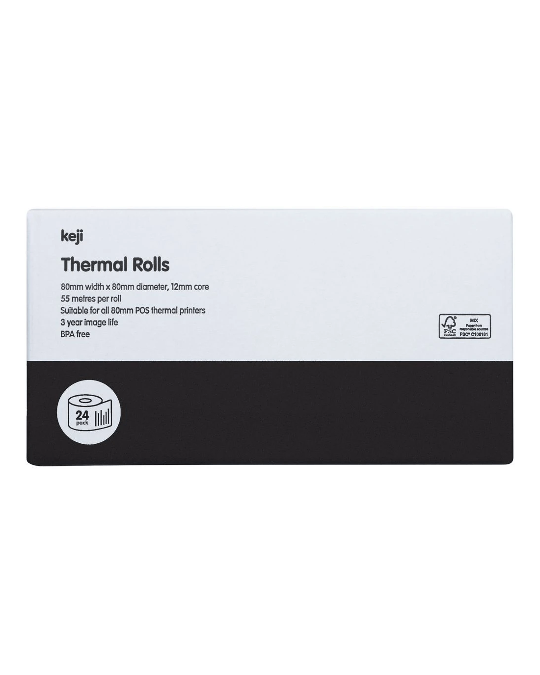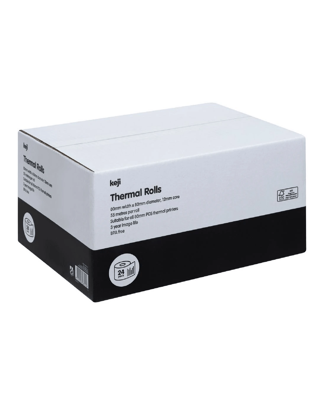 Sold by OfficeworksKeji 70gsm Thermal Rolls 80 x 80mm 24 Pack
