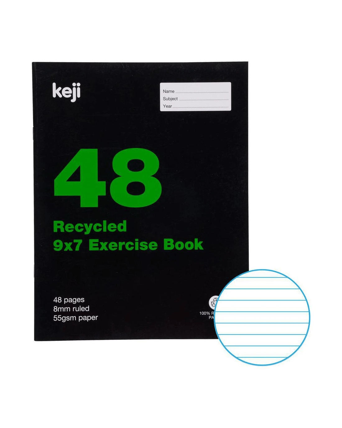 Keji 9x7" 55gsm 8mm Ruled Exercise Book 48 Page