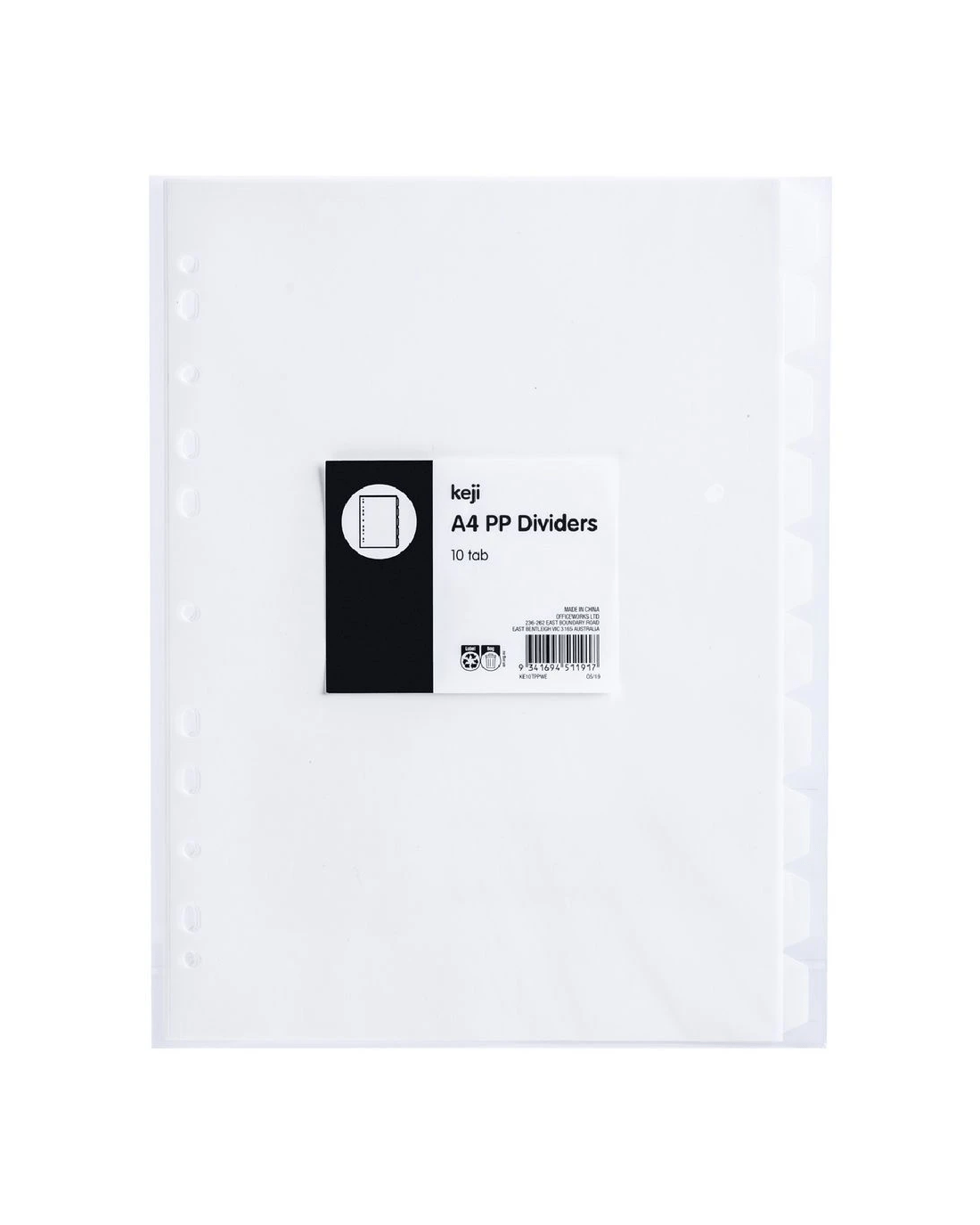 Sold by OfficeworksKeji A4 10 Tab Polypropylene Dividers White