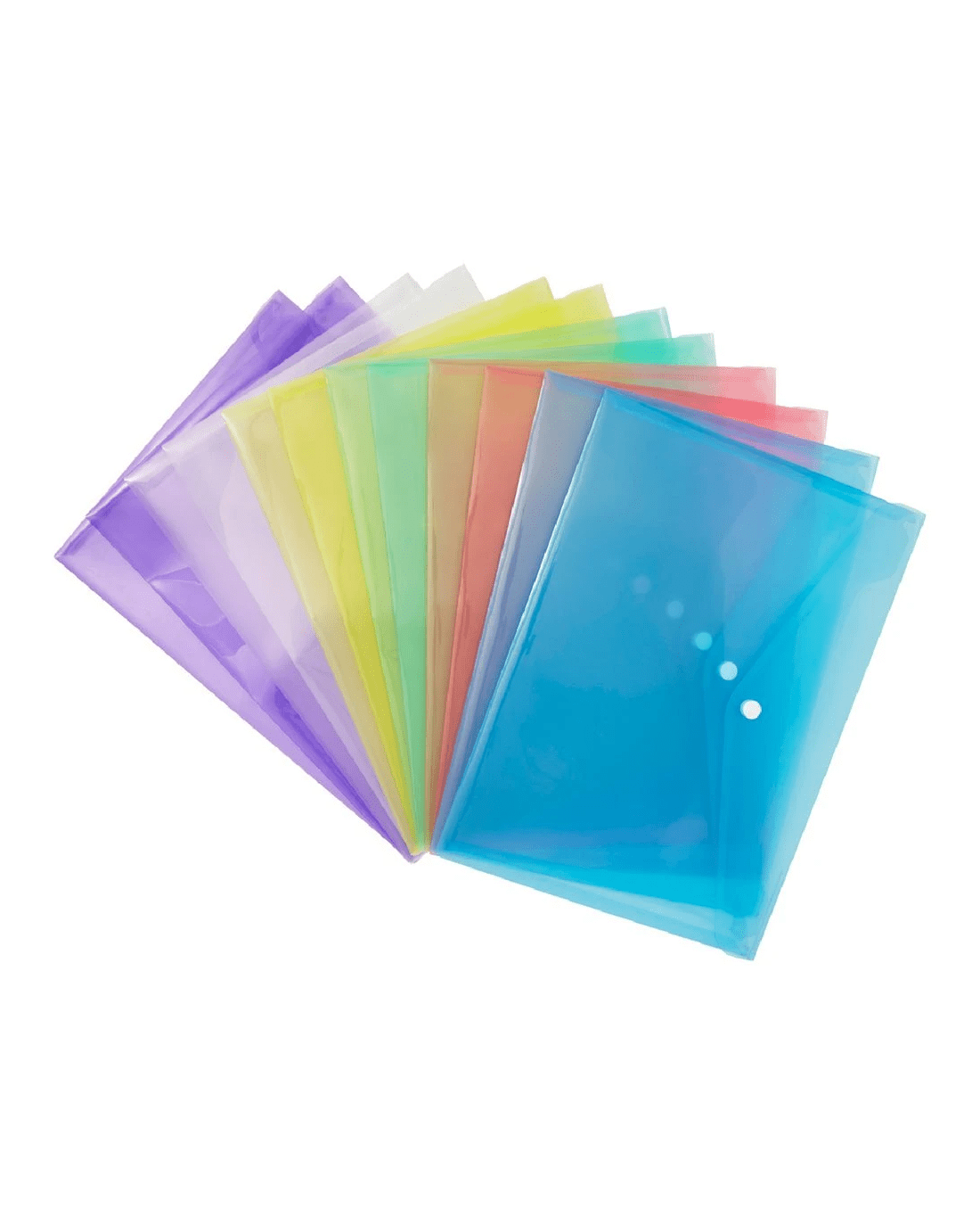 - There are 12 document wallets included in the pack with 2 of each blue, green, pink, yellow, purple and clear.