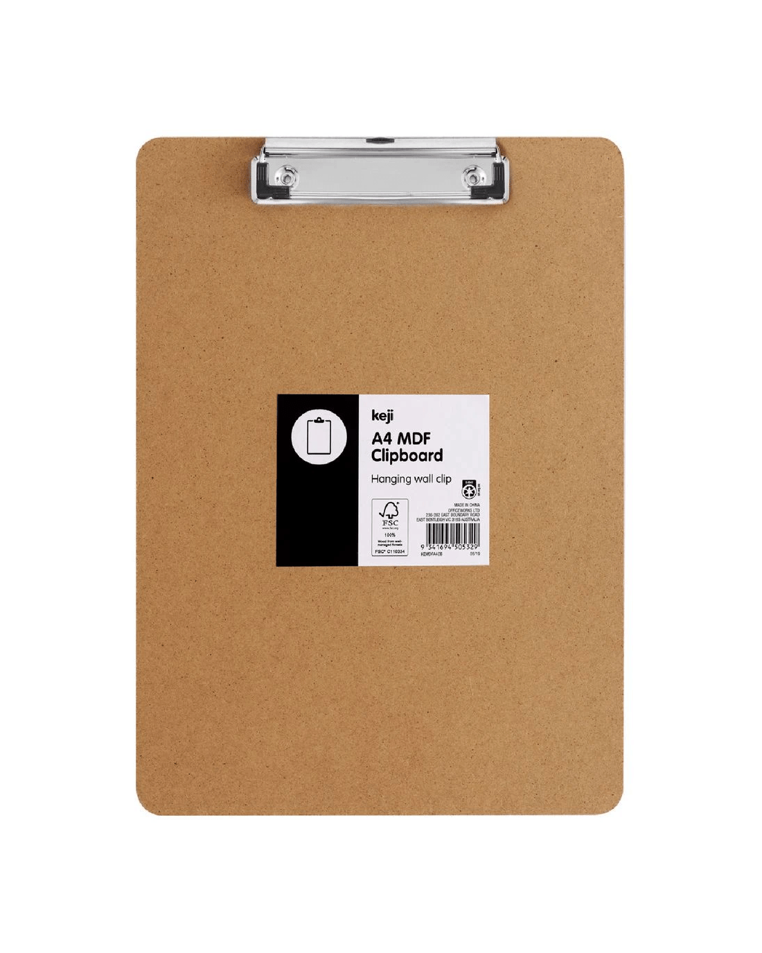 This Keji Clipboard can be used to store loose A4 documents and papers together. It features a QuickClip for quick release and has a hanging loop so you can hang the board up on a wall in clear view.