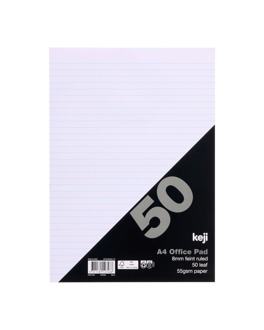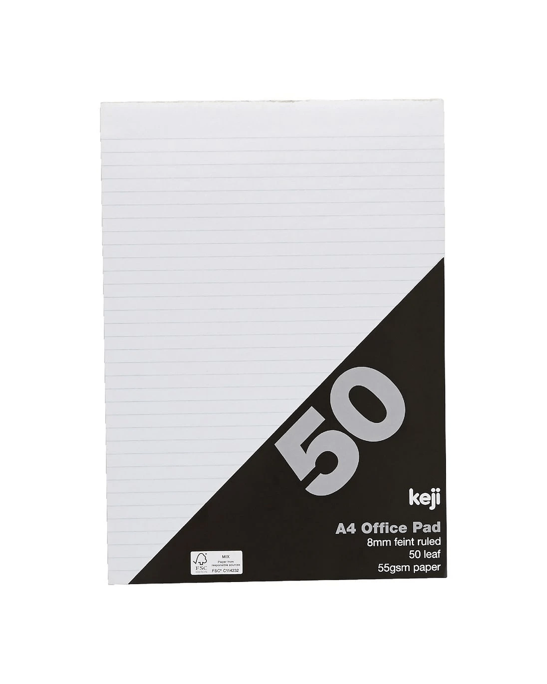 This Keji A4 Office Pad contains pages that are adhered together at the top of the pad, allowing you to tear off your notes and take them with you. This pad comes ruled for ease of writing and is great for use in the home, office, at school or anywhere else where notetaking is required.