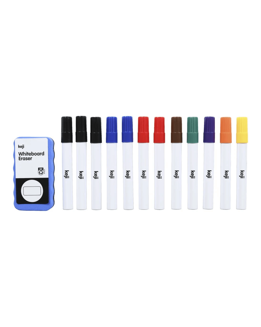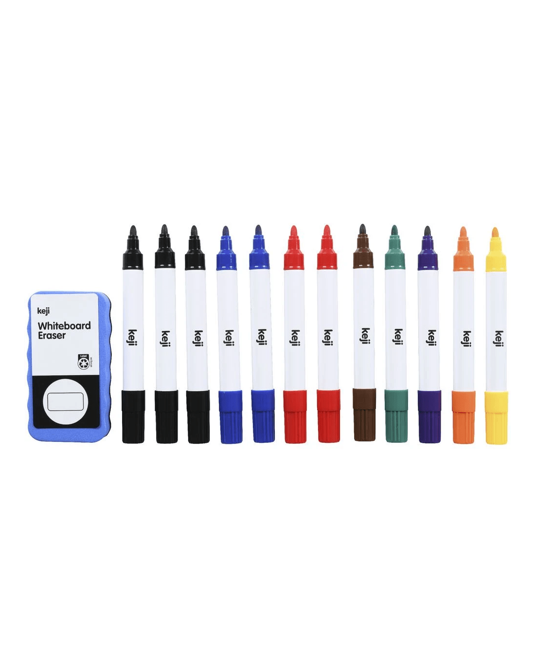 These Keji Whiteboard Markers come with erasers and have a durable barrel constructed from aluminium. Coming in assorted colours with 12 markers in total, it's perfect for stocking up the classroom or office.