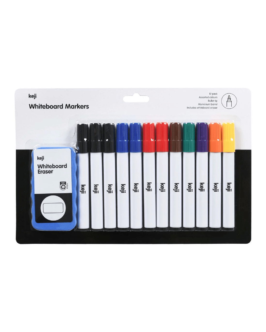 Sold by OfficeworksKeji Aluminium Barrel Whiteboard Markers with Eraser 12 Pack