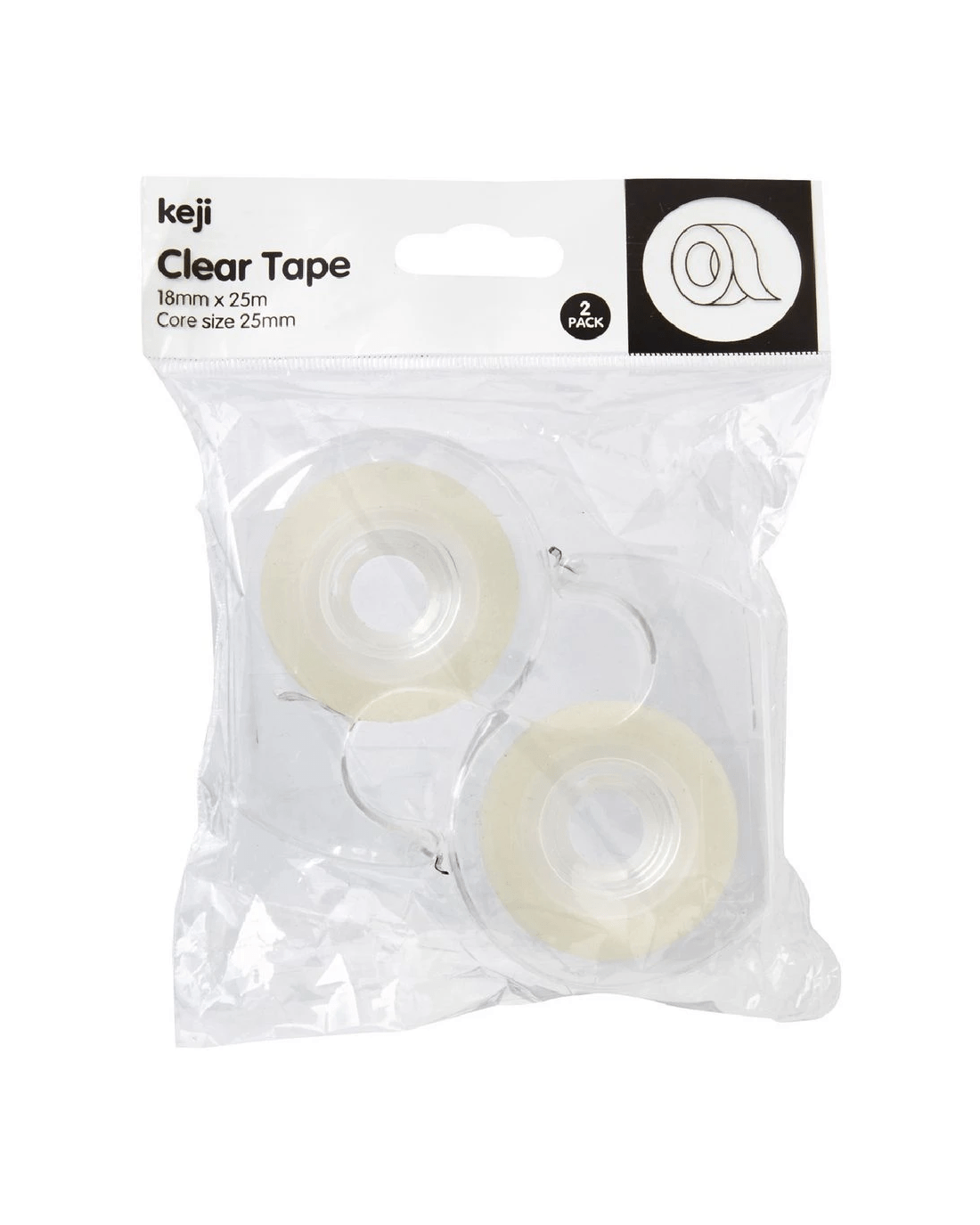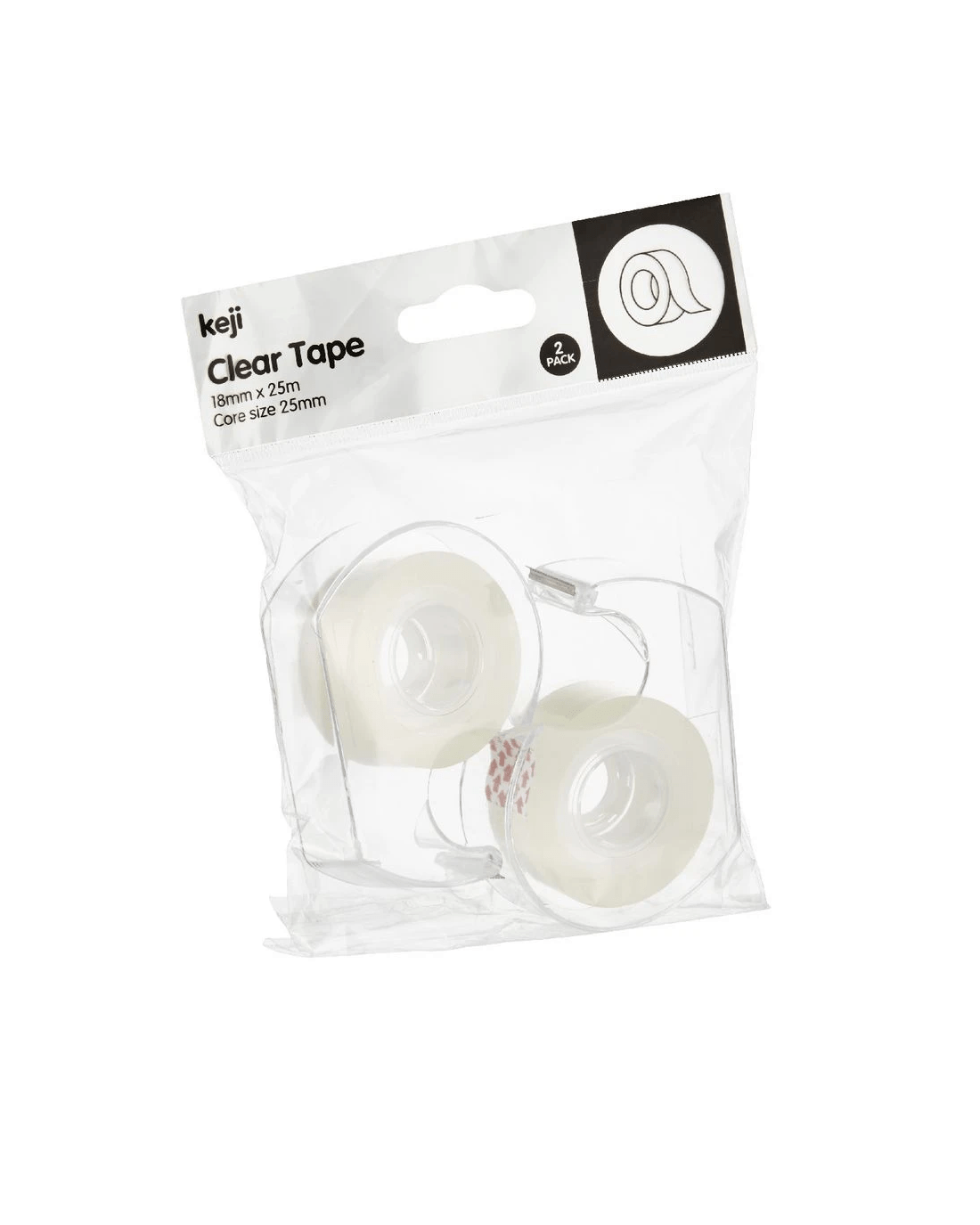 Sold by OfficeworksKeji Clear Adhesive Tape with Dispenser 18mm x 25m 2 Pack